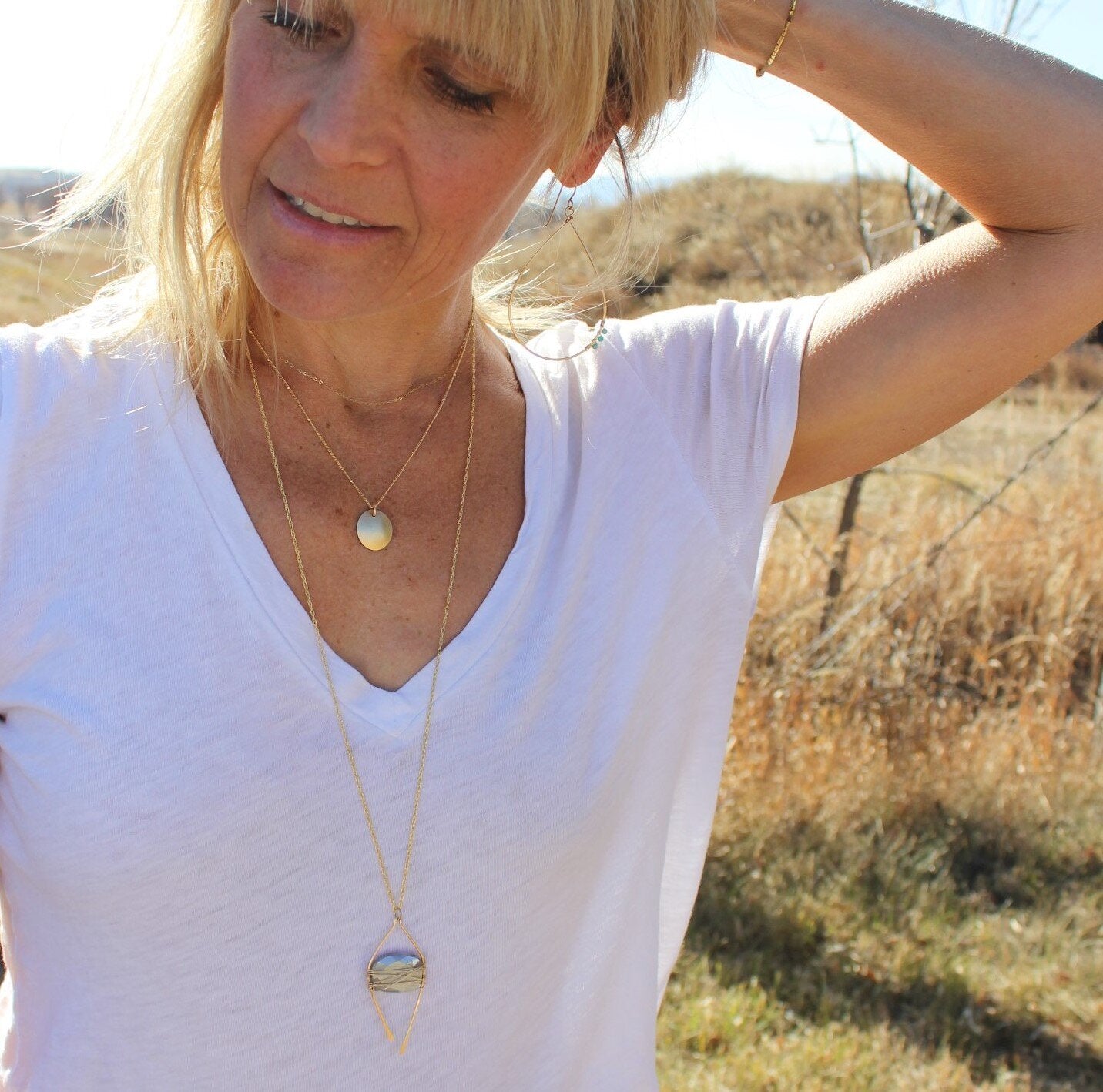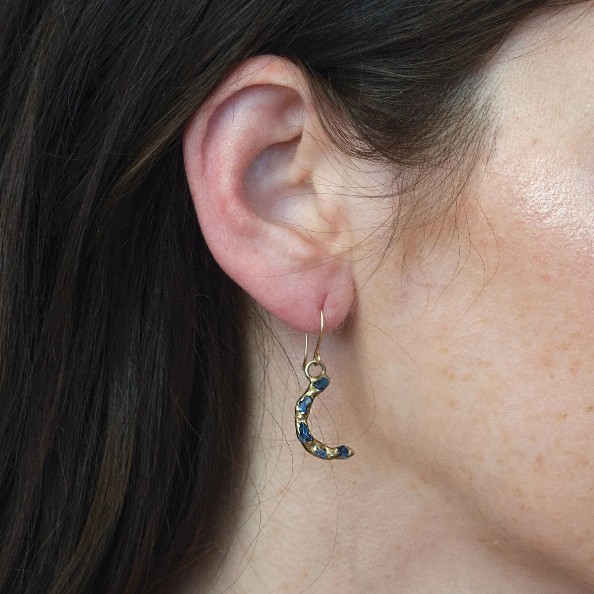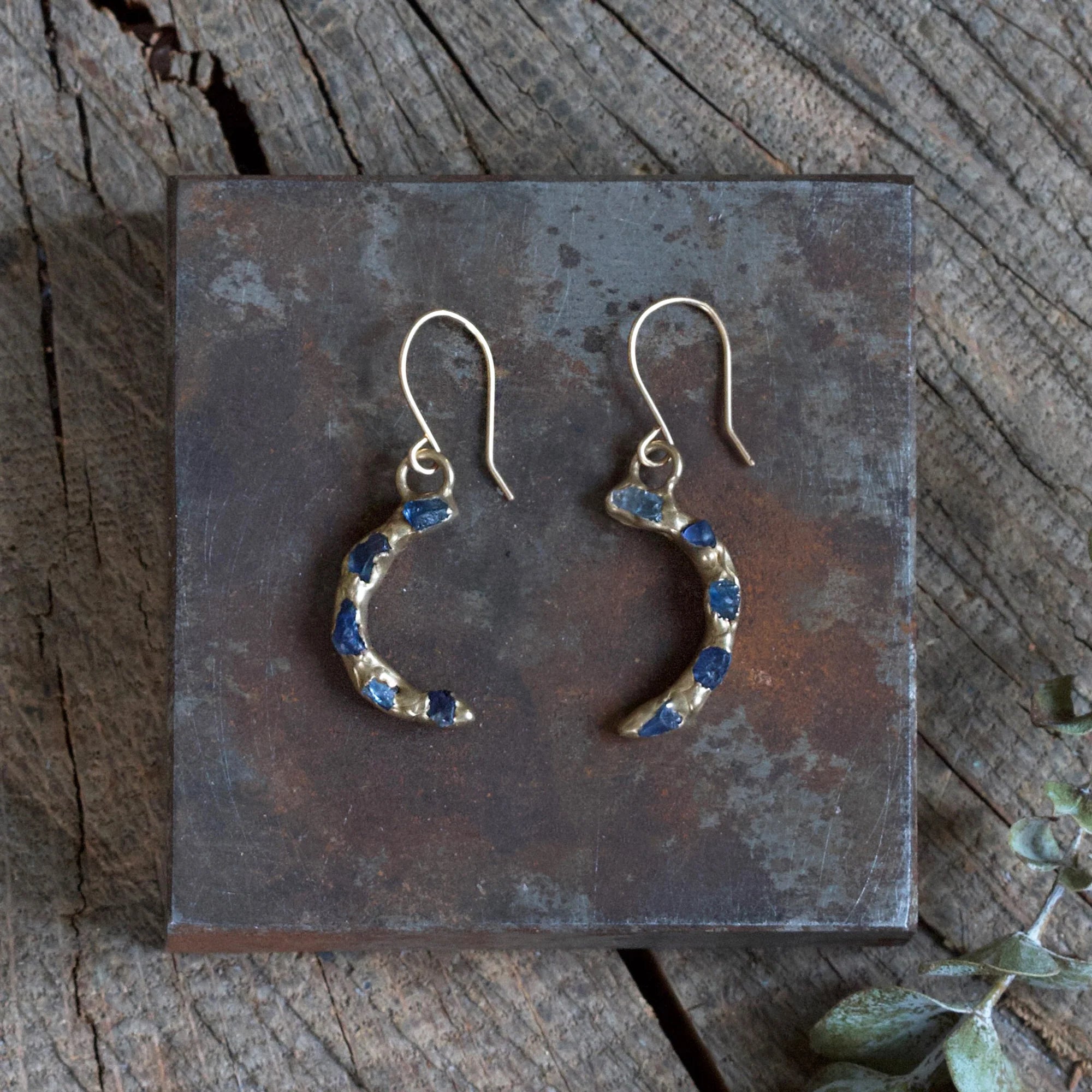 Eclipse Earrings - 14K Gold-Fill, Brass + Blue Sapphire
