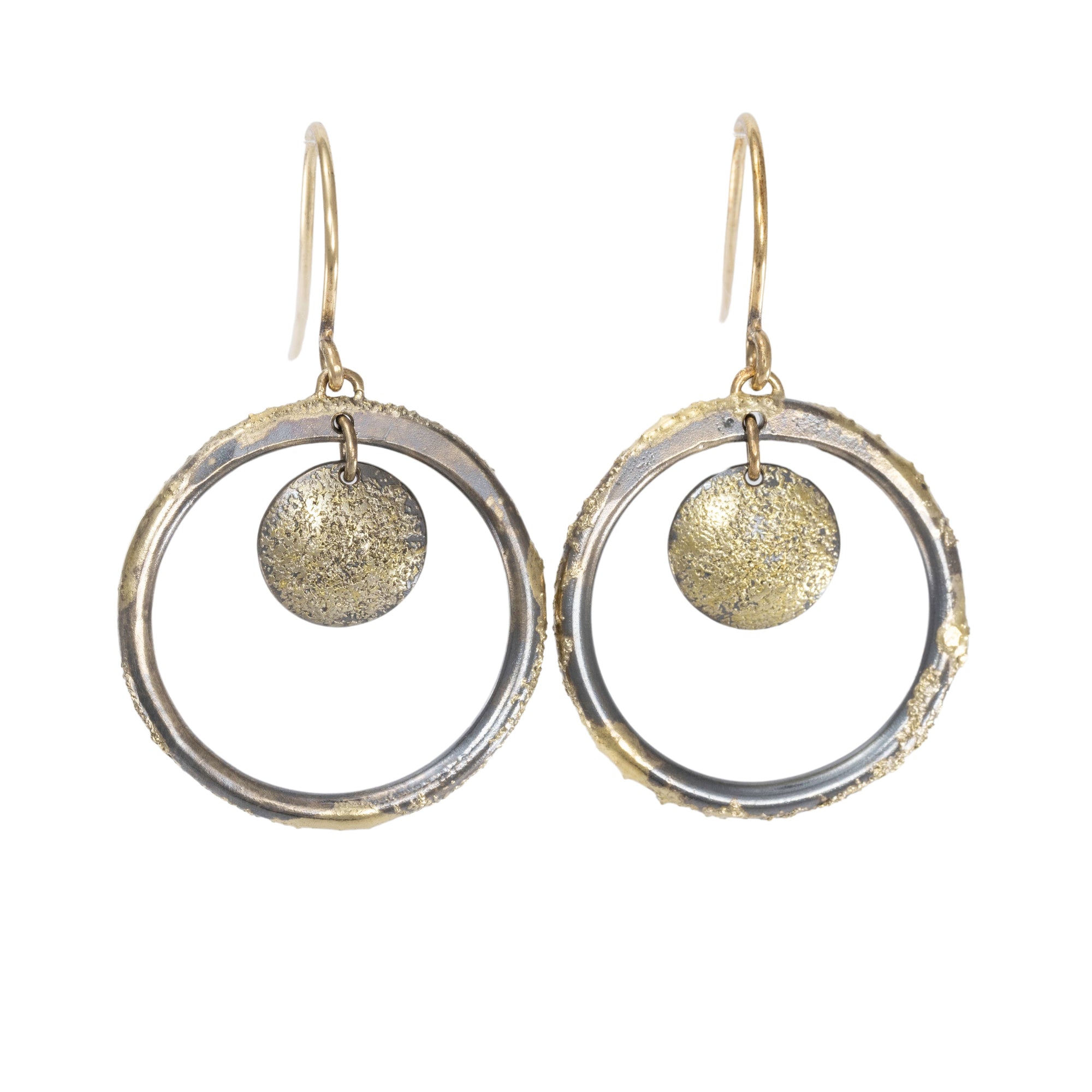 Large Sun Centric Earrings - 22k/18k/14k Gold + Oxidized Silver