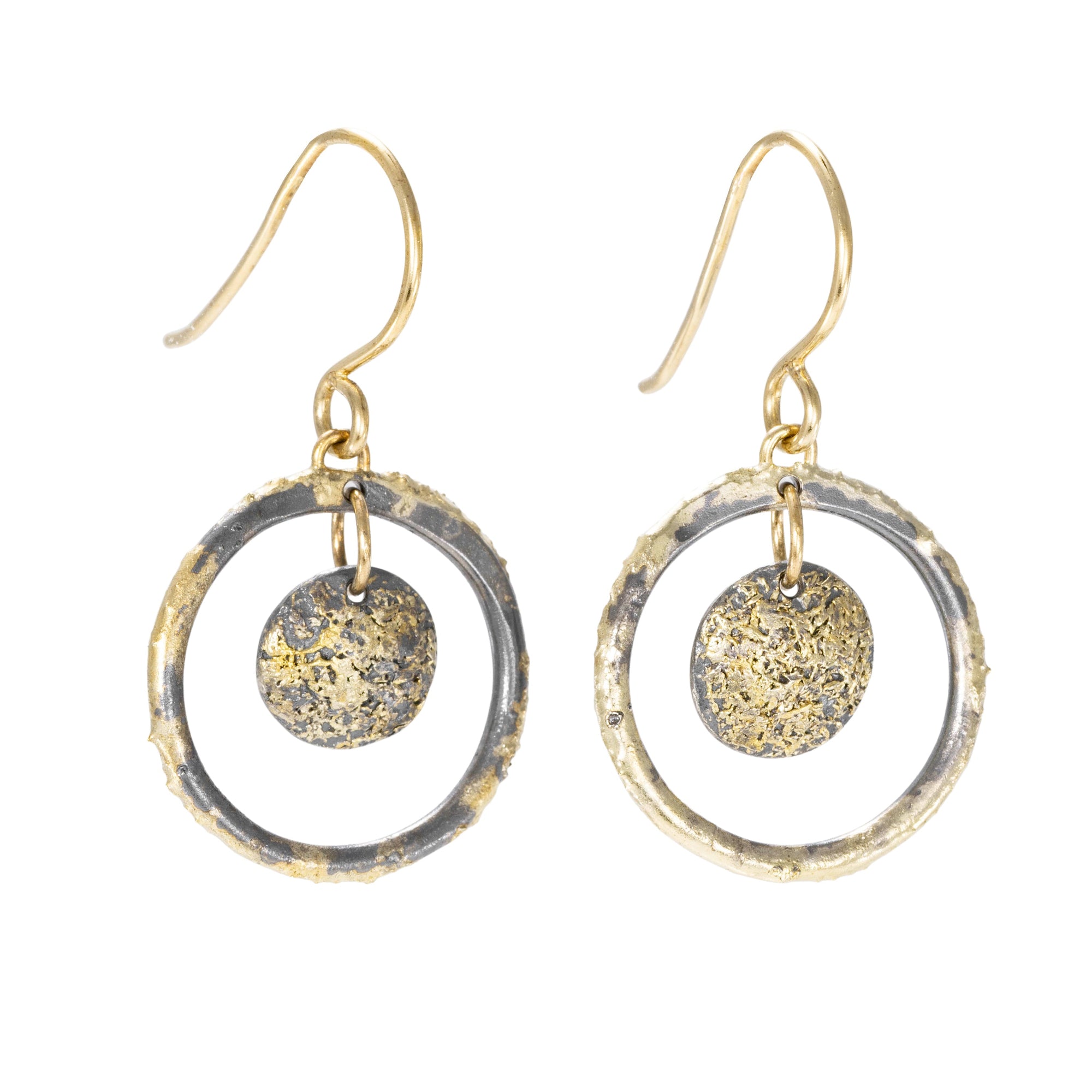 Small Sun Centric Earrings - 22k/14k Gold + Oxidized Silver