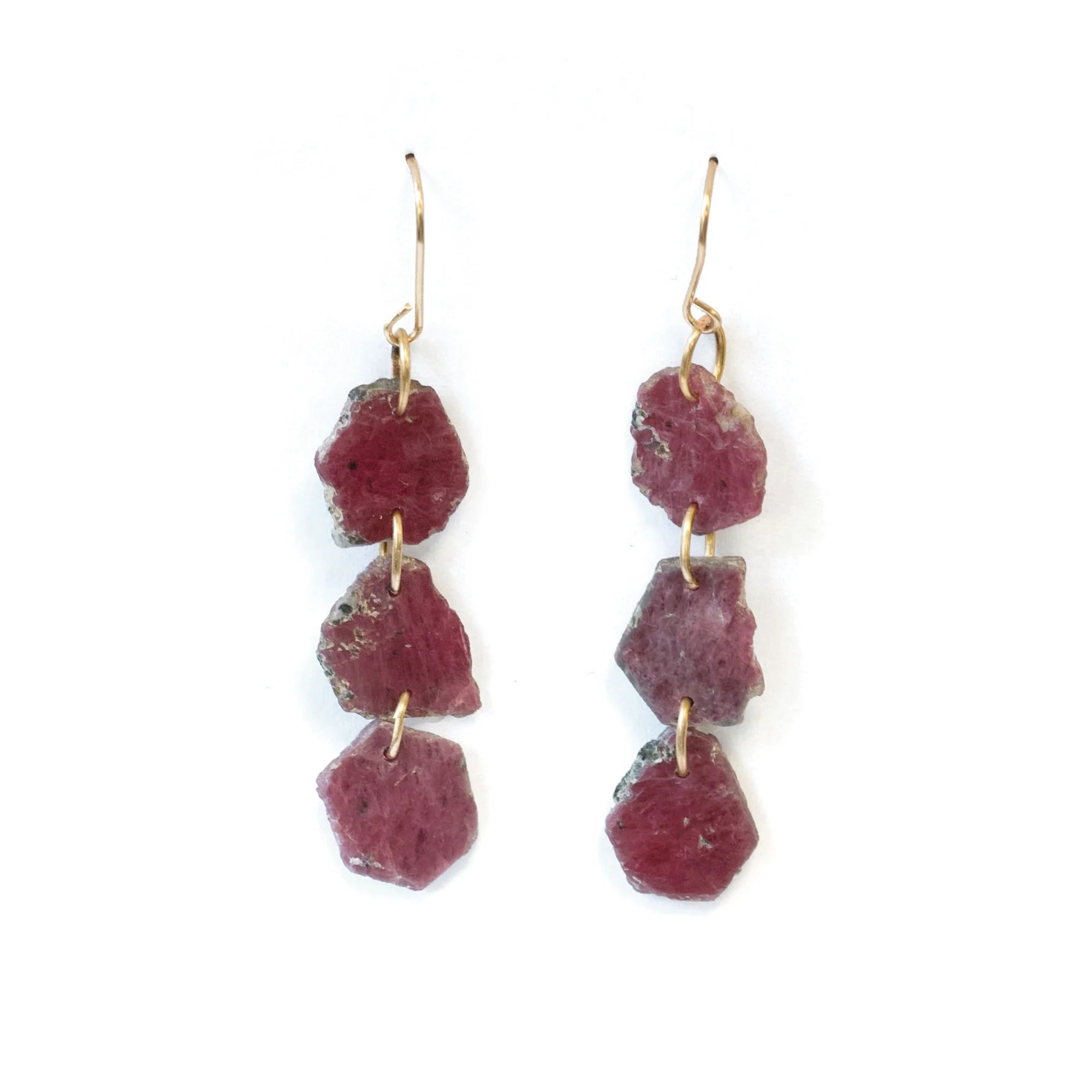 Long Echo Earrings - 14k Gold-Fill, Brass + Ruby