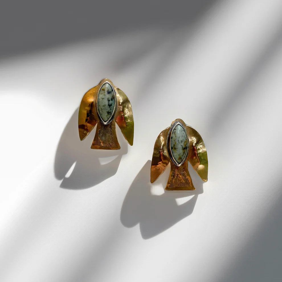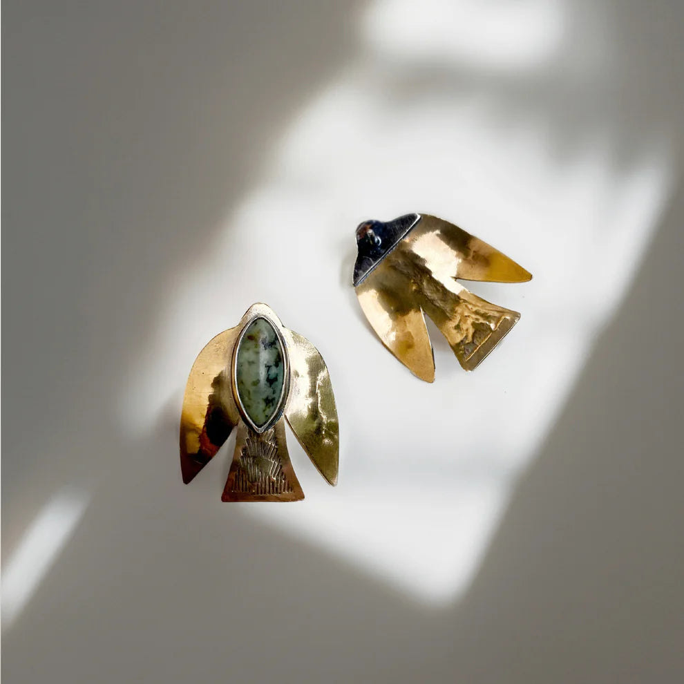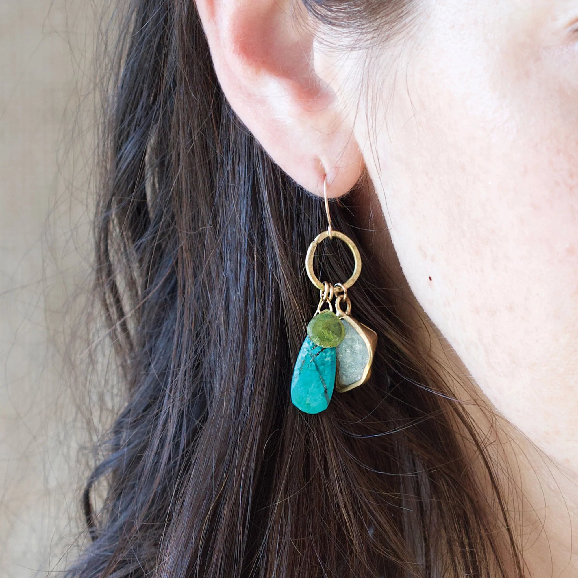Lure Earrings - Brass, Aquamarine, Vesuvianite + Chrysocolla