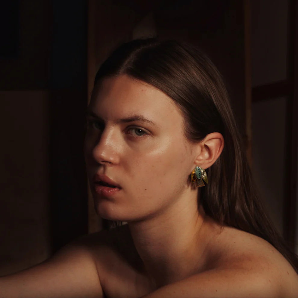 Cluster Studs - Brass, Silver, Aquamarine + Ruby
