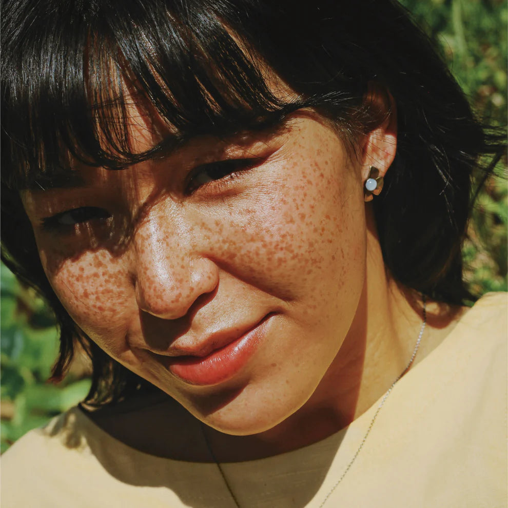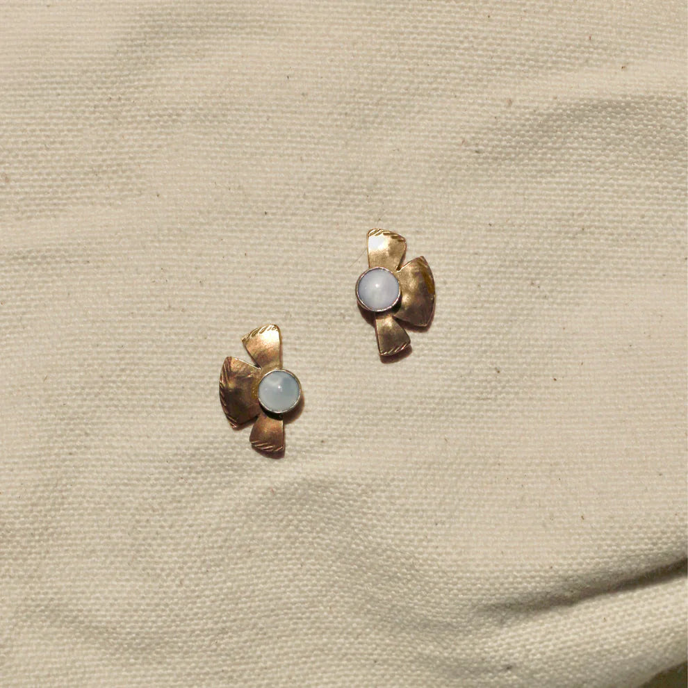 Solis Studs - Oxidized Brass, Sterling Silver + Blue Moonstone Glass