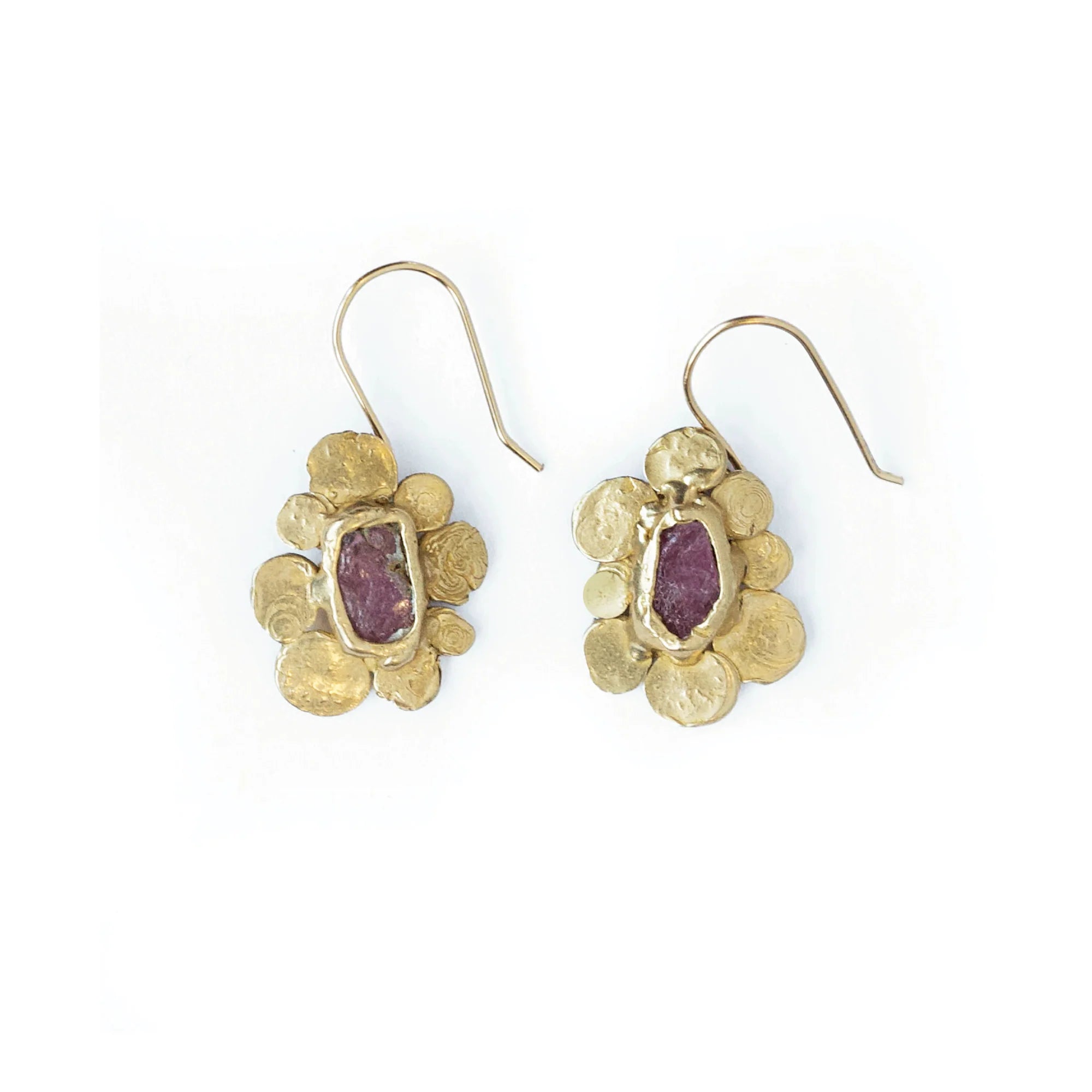 Echo earrings - 14k Gold-Fill, Brass, + Ruby