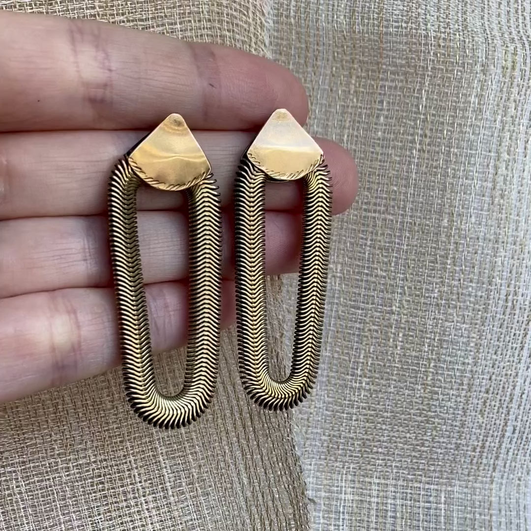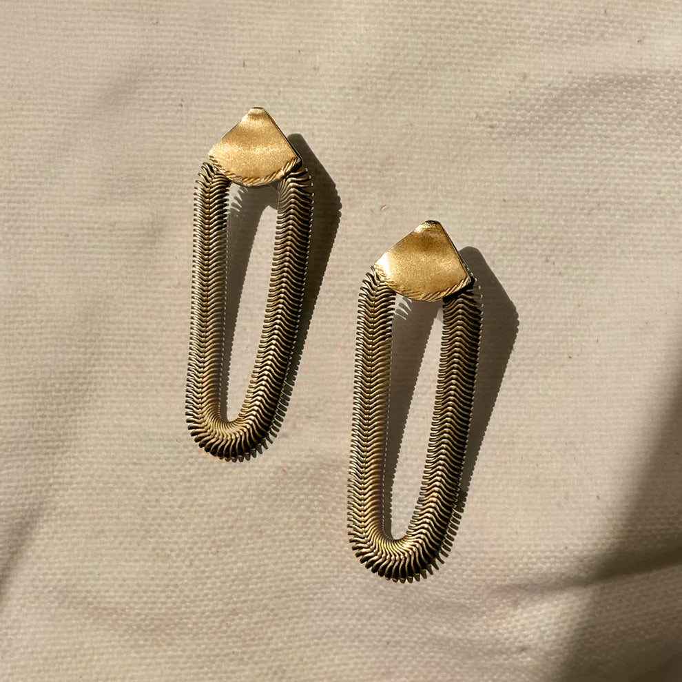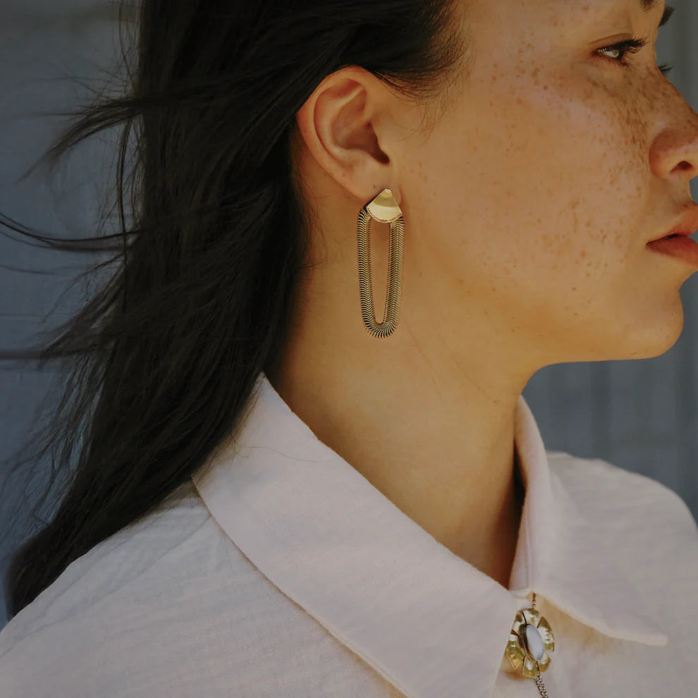 Serpentine Earrings - Oxidized Brass + Sterling Silver