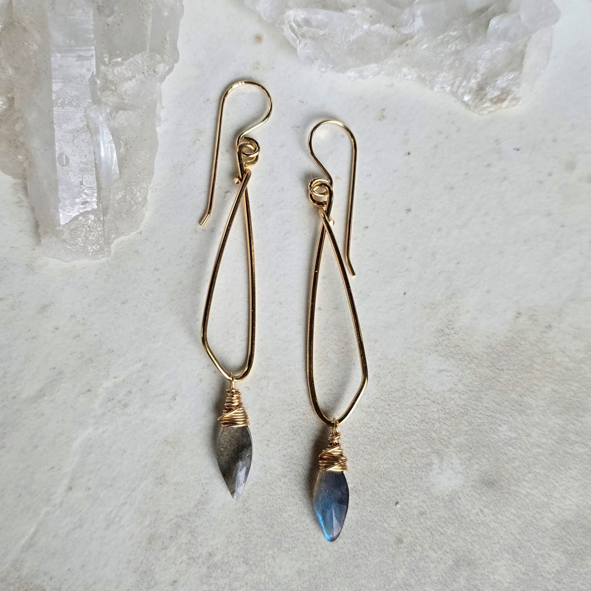 Aquamarine Guardian Hoops - Brass, Silver + Aquamarine