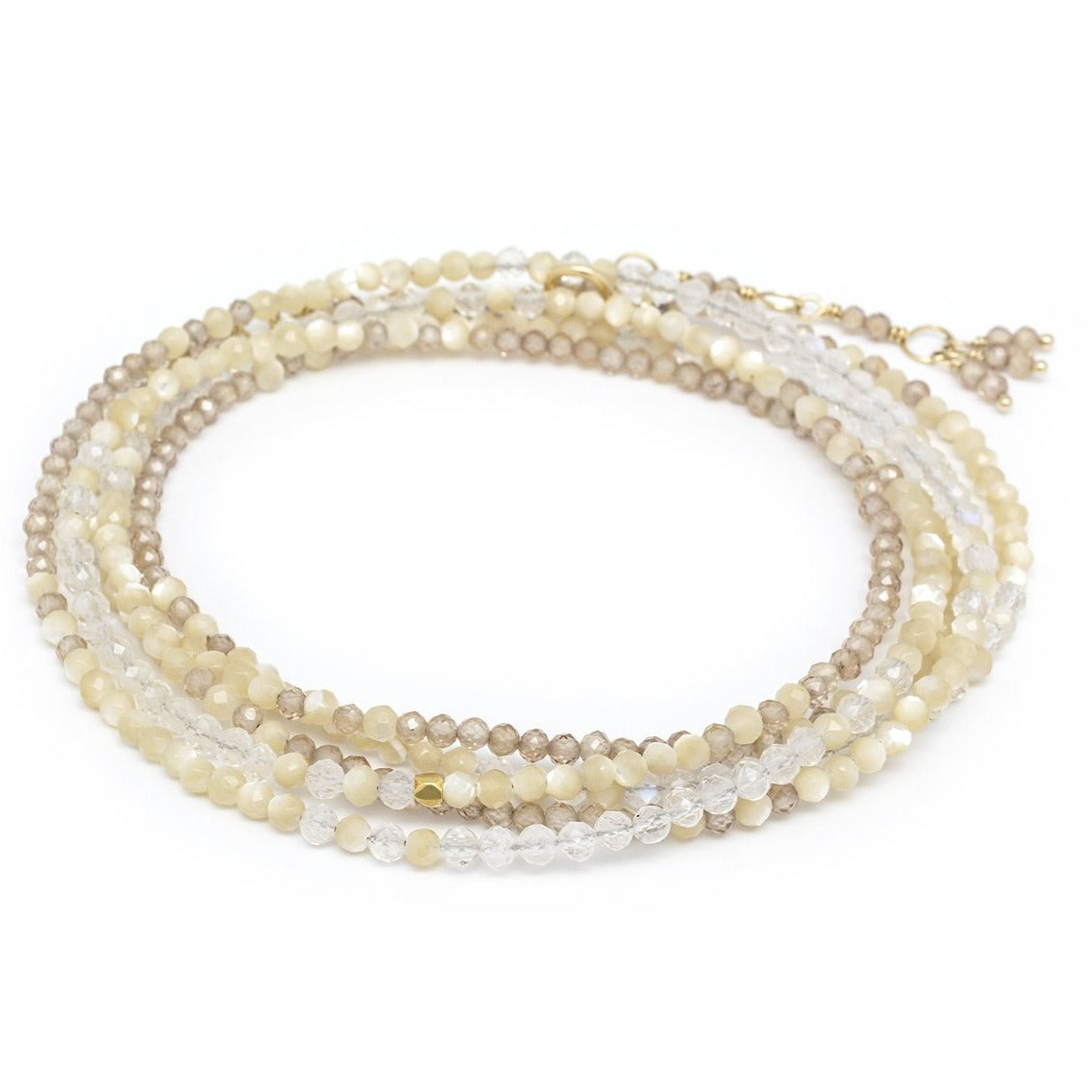 Sand Ombre Wrap Bracelet-Necklace - 18k Gold, Mother of Pearl, Brown Zircon + Moonstone