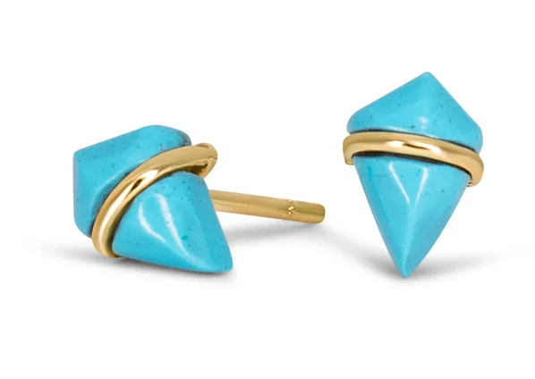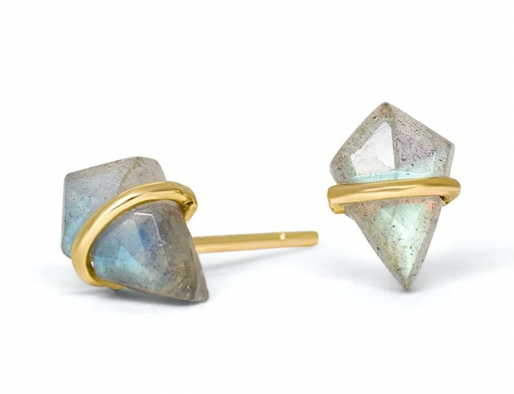 Mini Whirlpool Earrings - Brass + Aquamarine