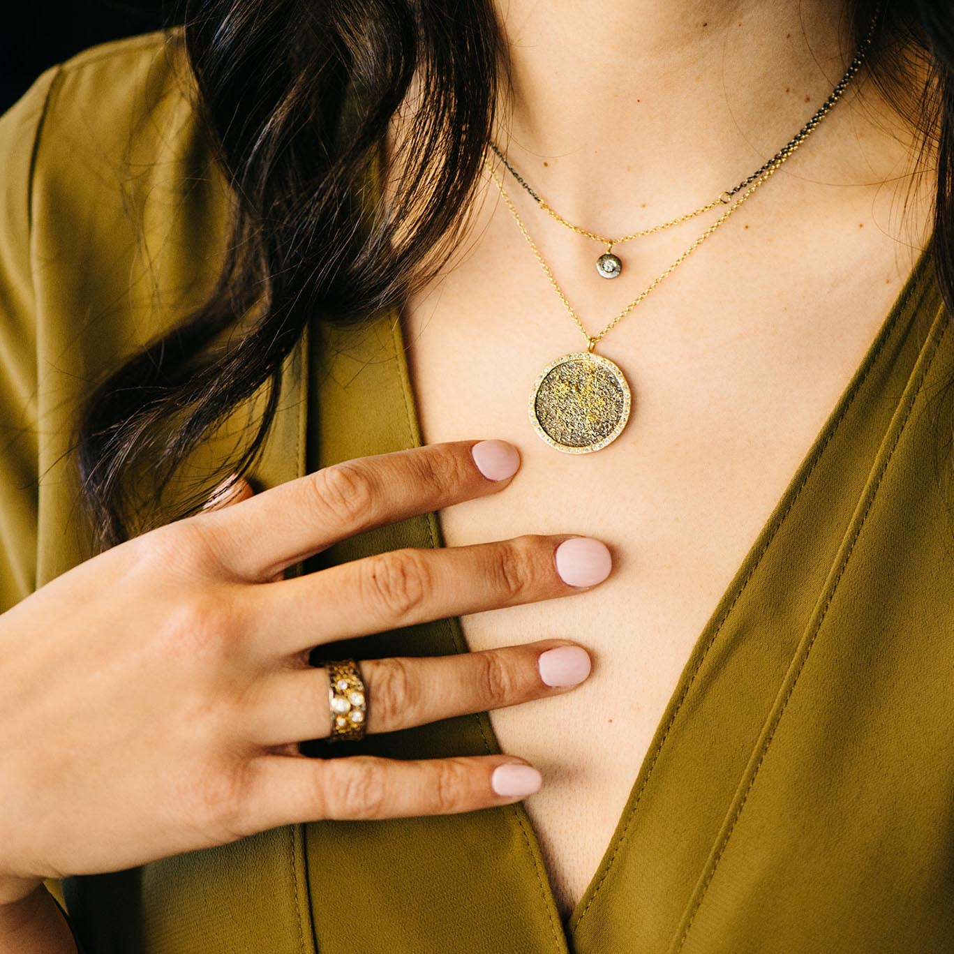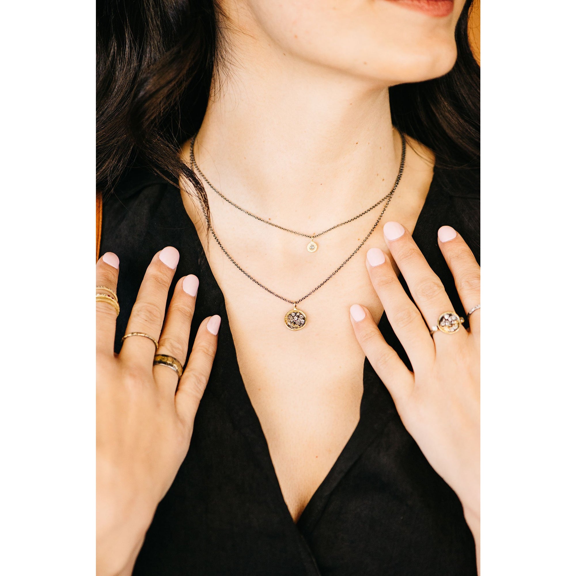 Pebble Necklace - 18k Gold, Oxidized Silver + Reclaimed Diamonds