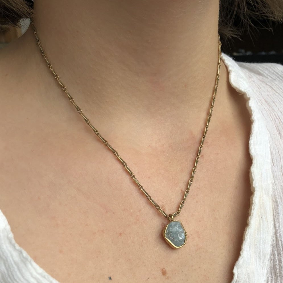 Guardian Pendant - Aquamarine + Brass