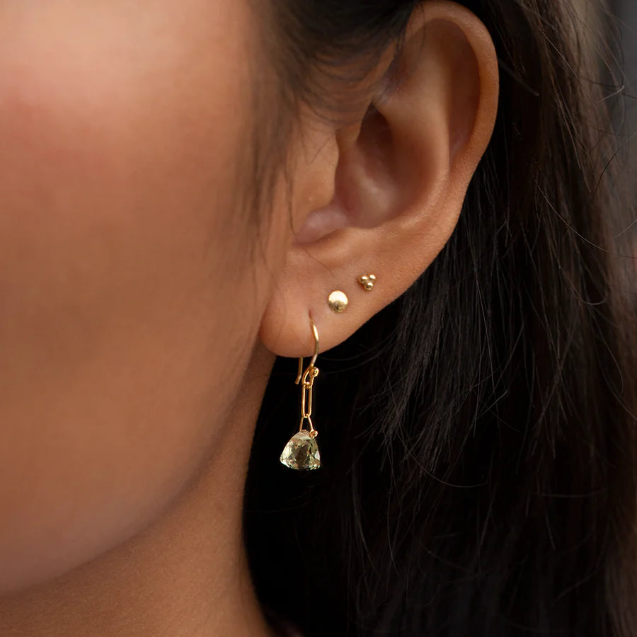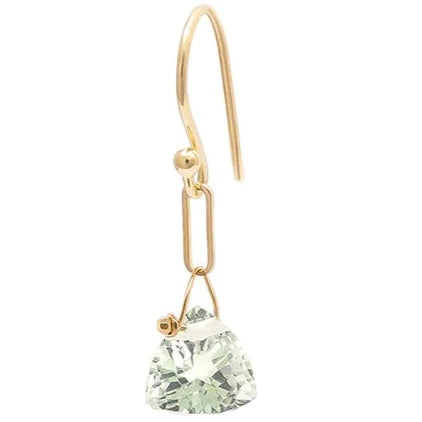 Gemstone Paper Clip Earrings - 18ky, 14ky + Green Amethyst