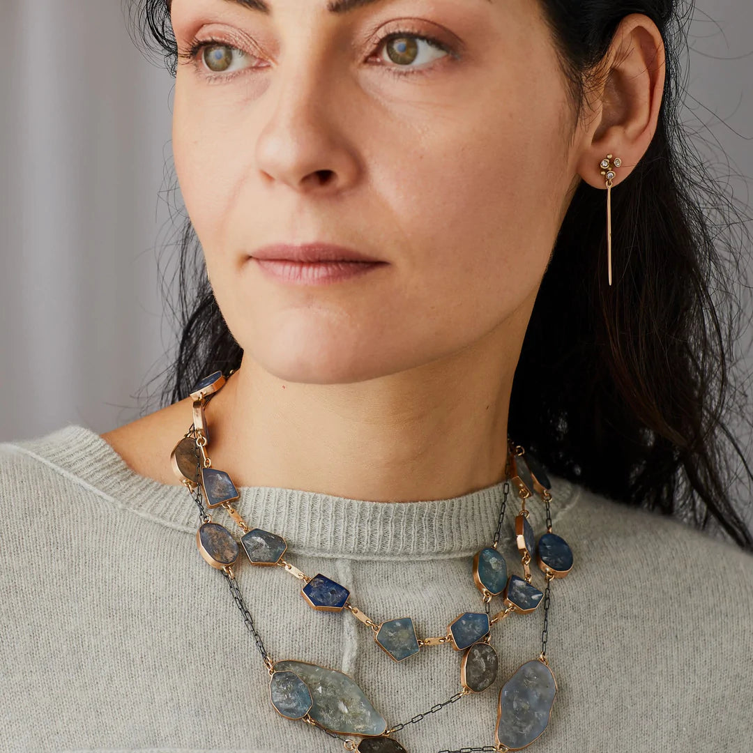 Grain Bronze Aqua Chalcedony Earring