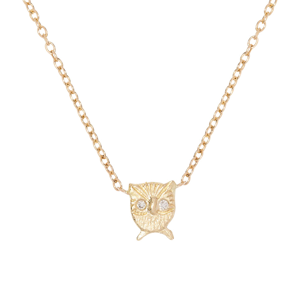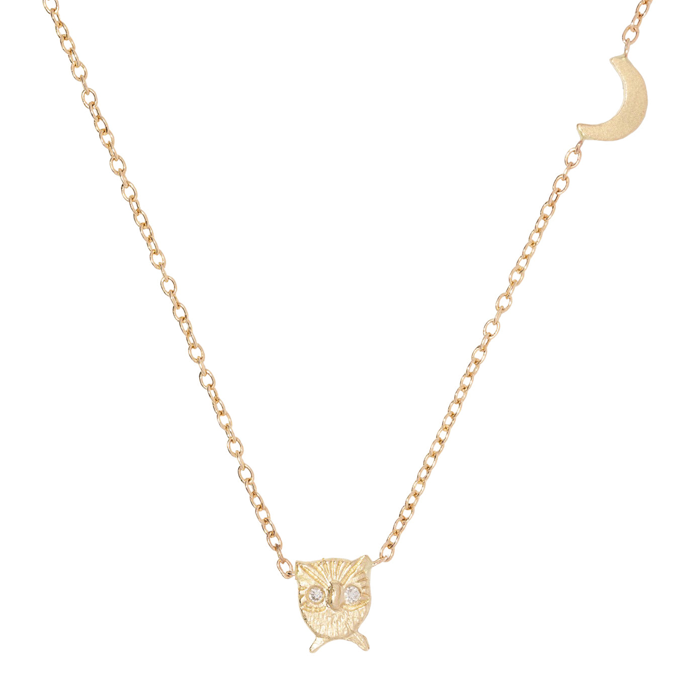 Owl + Moon Necklace - 14k Gold + Diamonds
