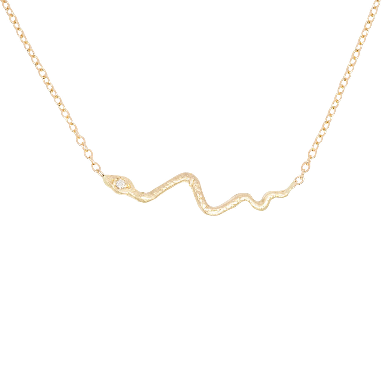 Tiny Snake Necklace - 14k Gold + Diamond