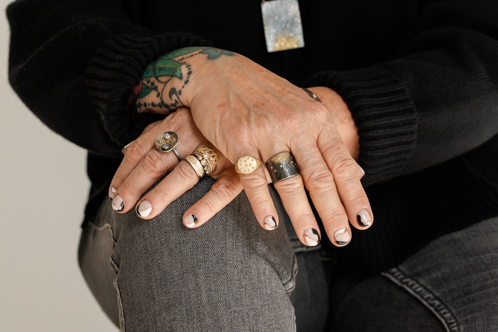 Adorn your hands with unique, handmade + sustainable jewelry created in our Denver studio. The KMJ collection of unique rings, bands, and stackers features high-quality 22k/18k gold, blackened Argentium silver, and reclaimed diamonds.