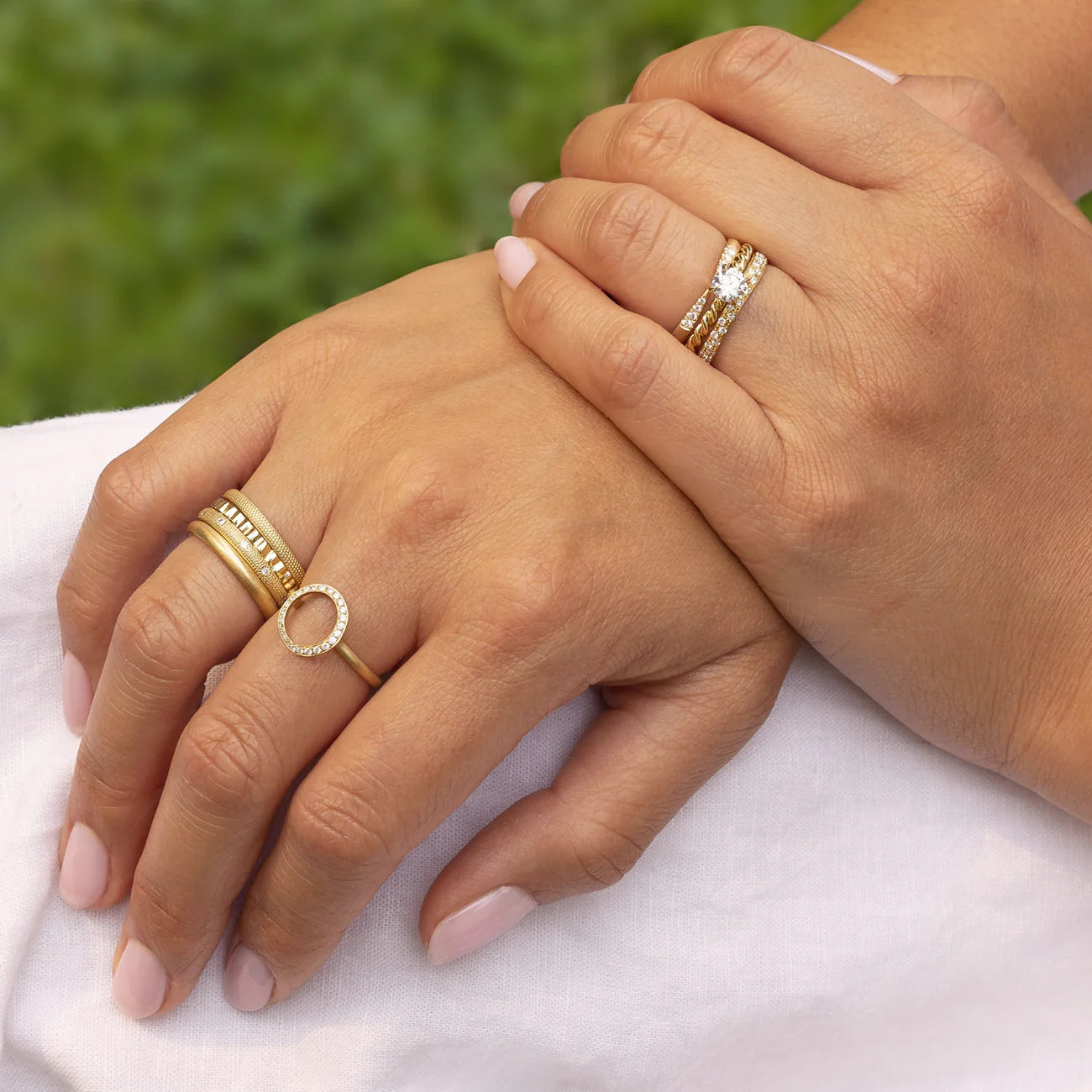 Orbit Stacking Ring - 22k Gold, Oxidized Silver + VS White Diamonds