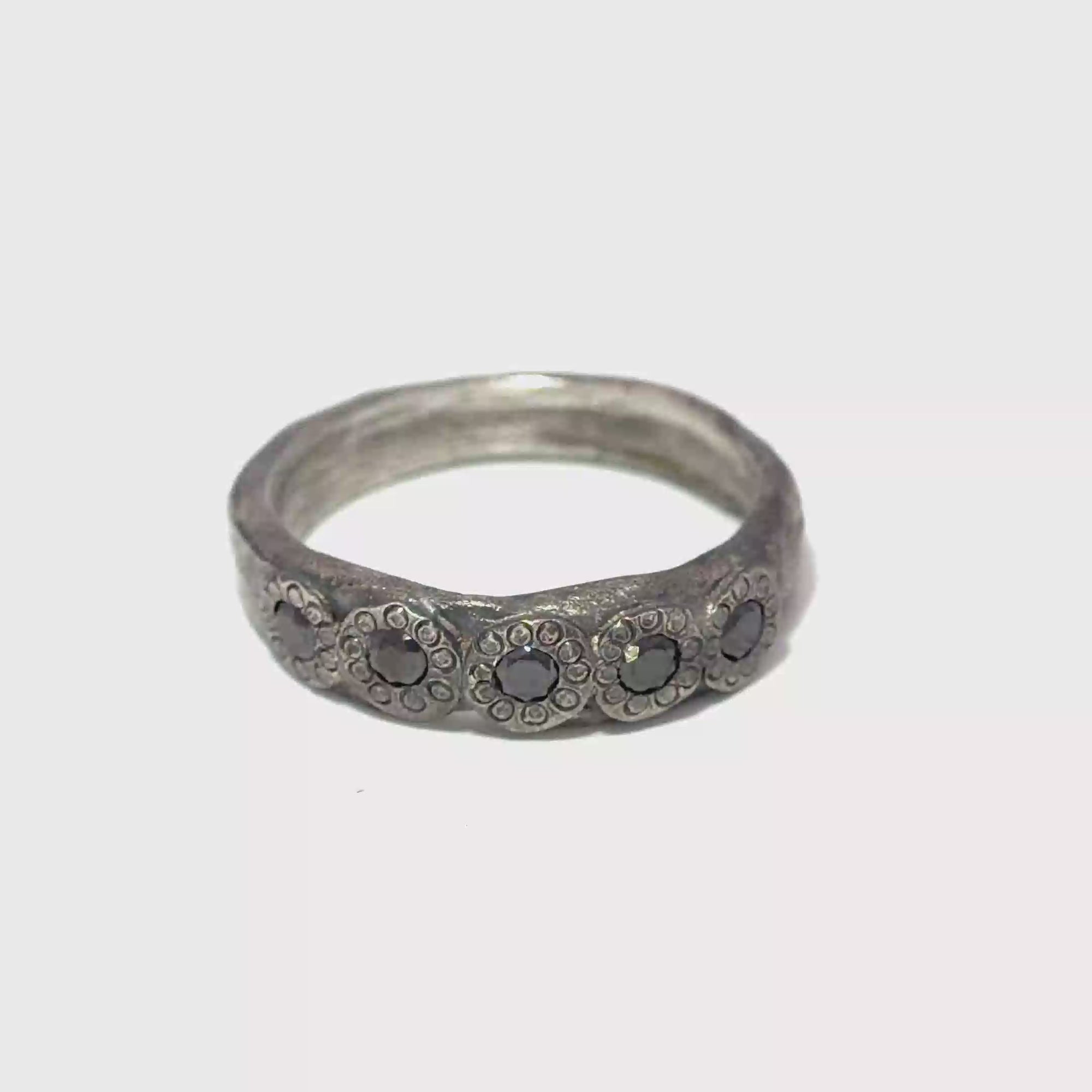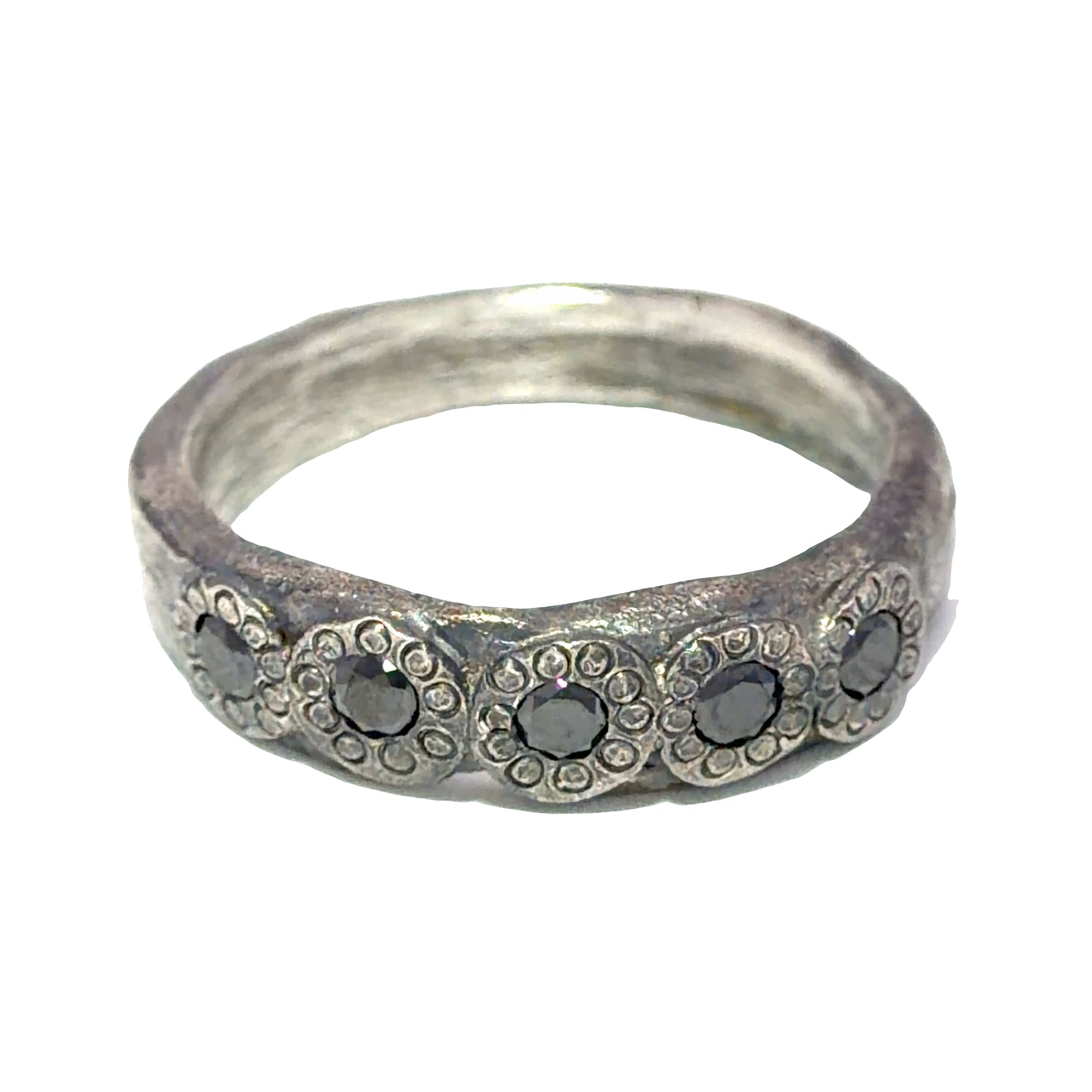 Black Diamond Bubble Band - Oxidized Sterling Silver + Black Diamonds