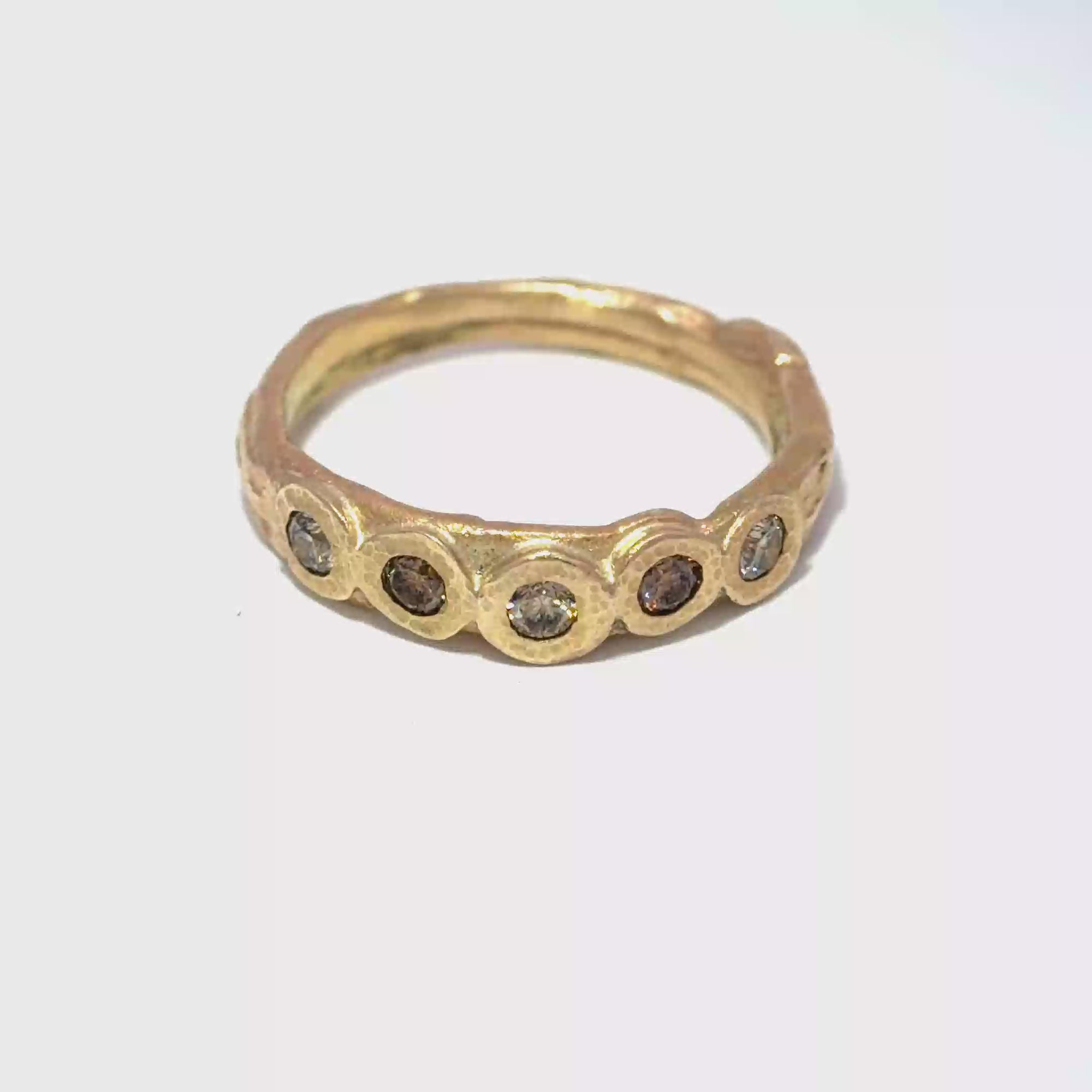 Warm Diamond Bubble Band - 10ky Gold, Champagne + Cognac Diamonds