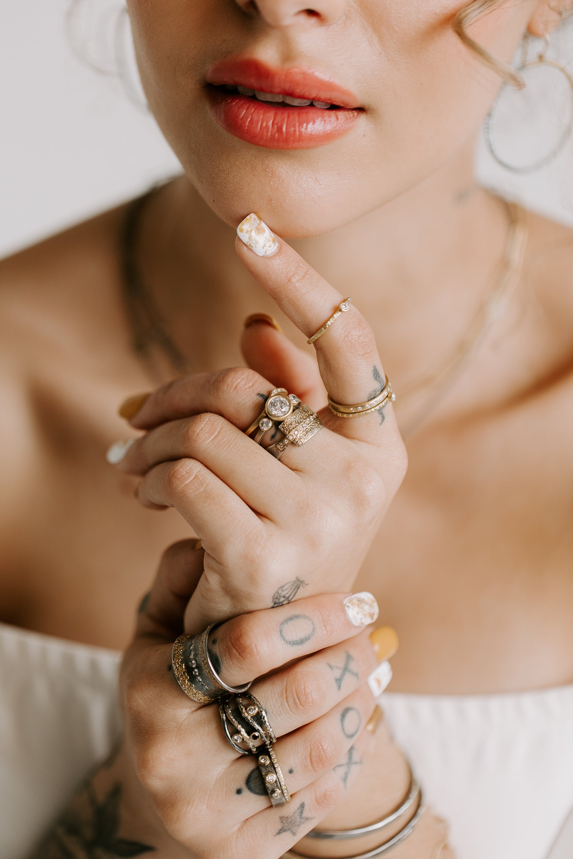 Adorn your hands with unique, handmade + sustainable jewelry created in our Denver studio. The KMJ collection of unique rings, bands, and stackers features high-quality 22k/18k gold, blackened Argentium silver, and reclaimed diamonds.