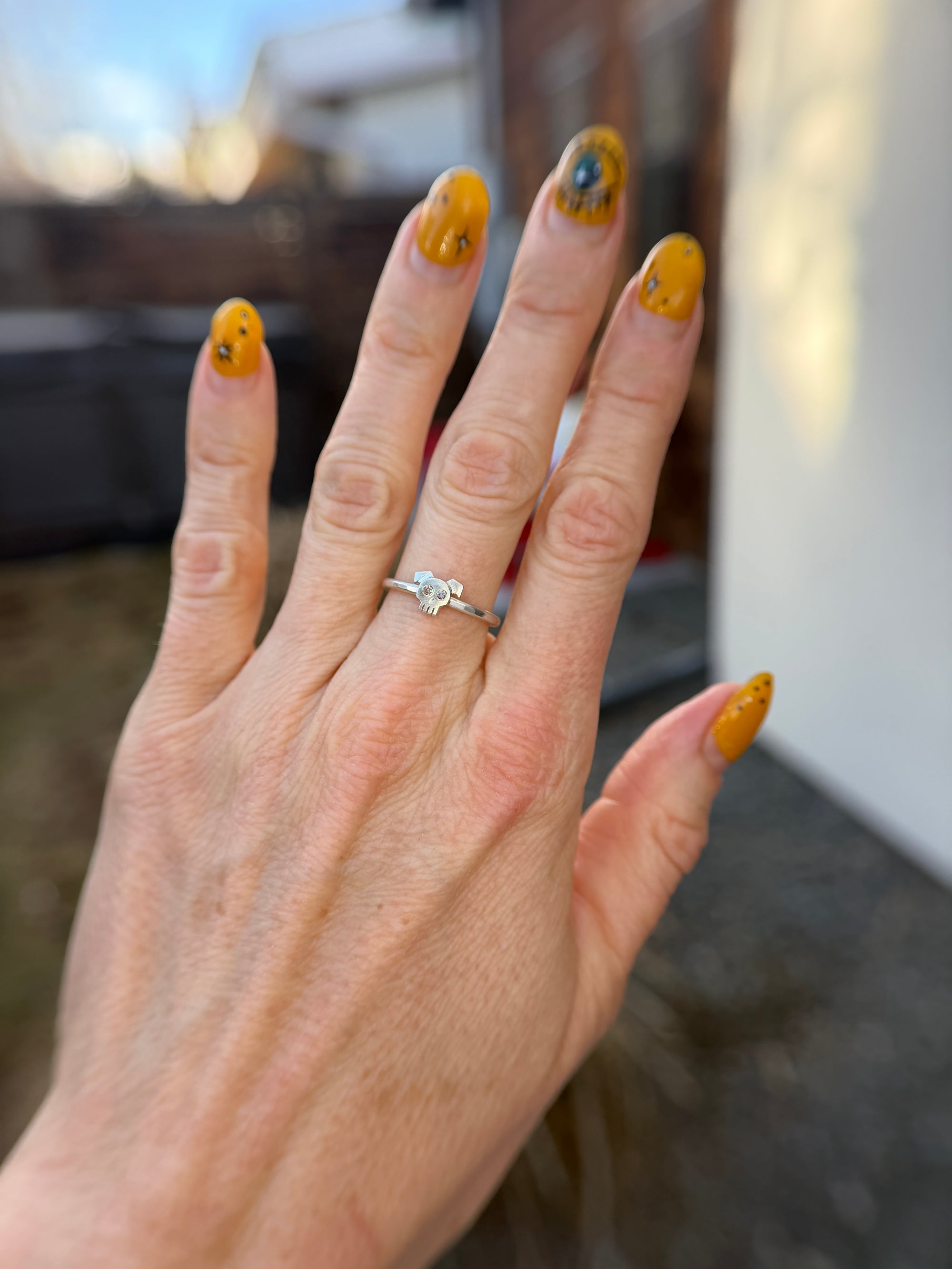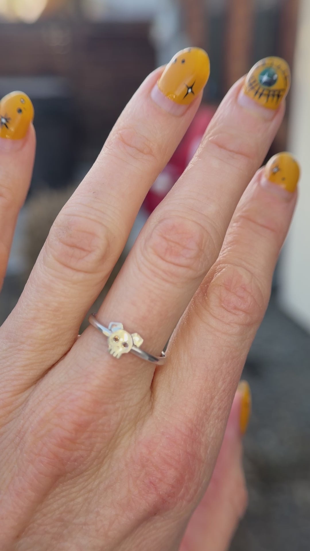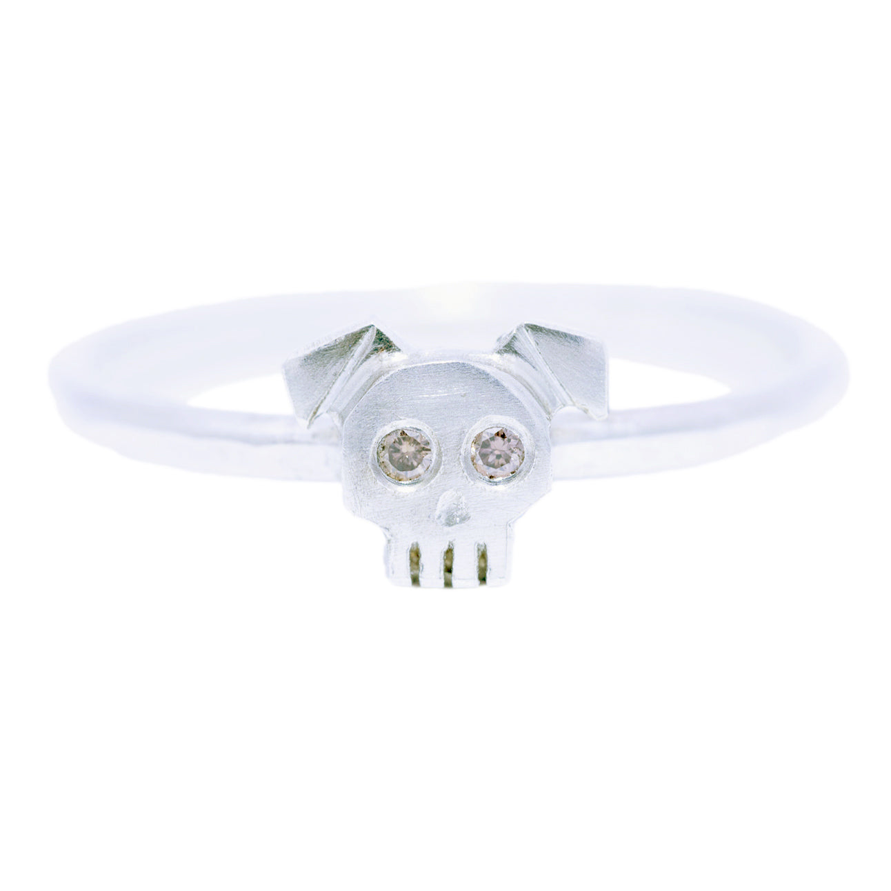 Doggy Skull Ring - Sterling Silver + Cognac Diamonds
