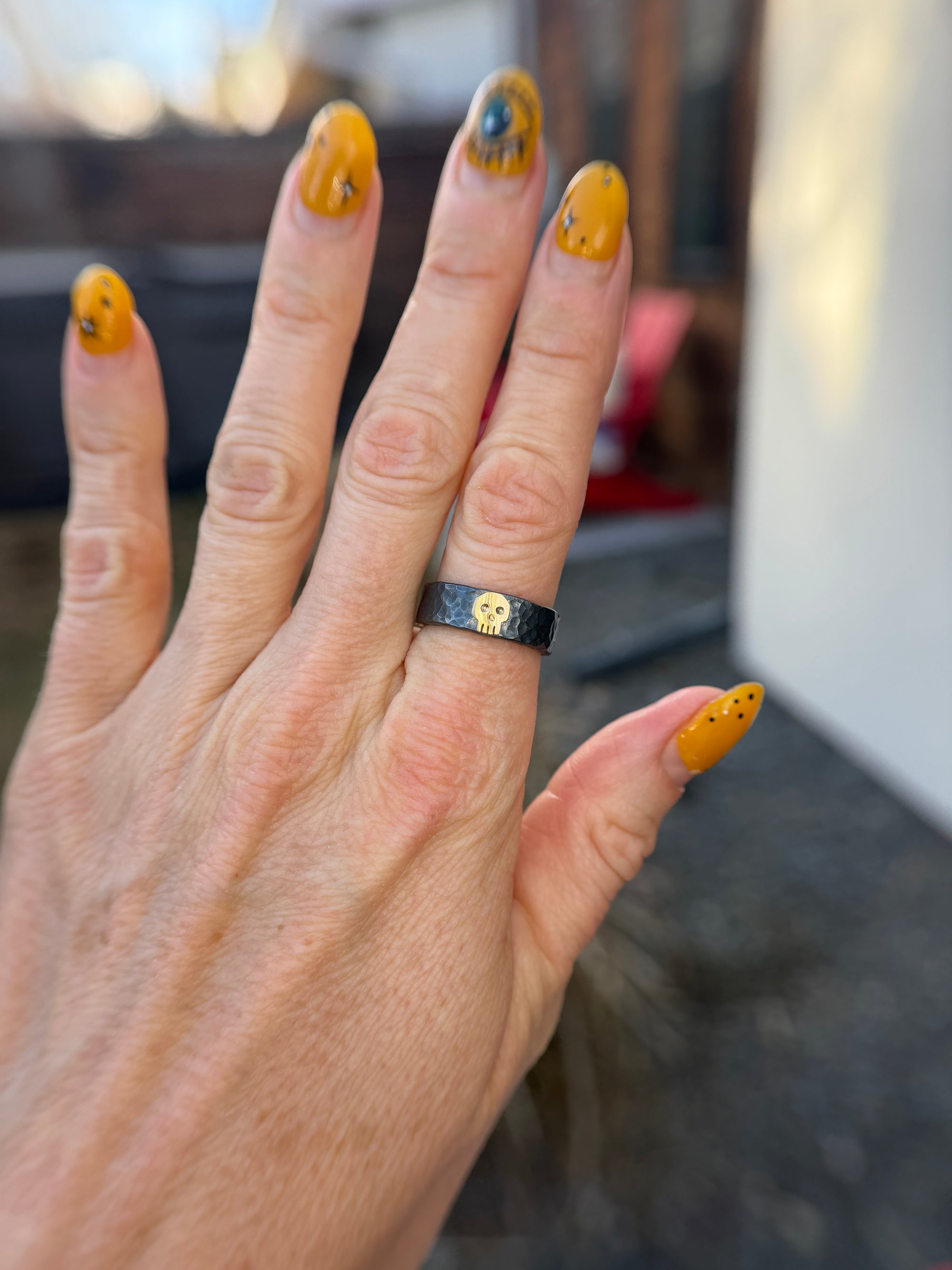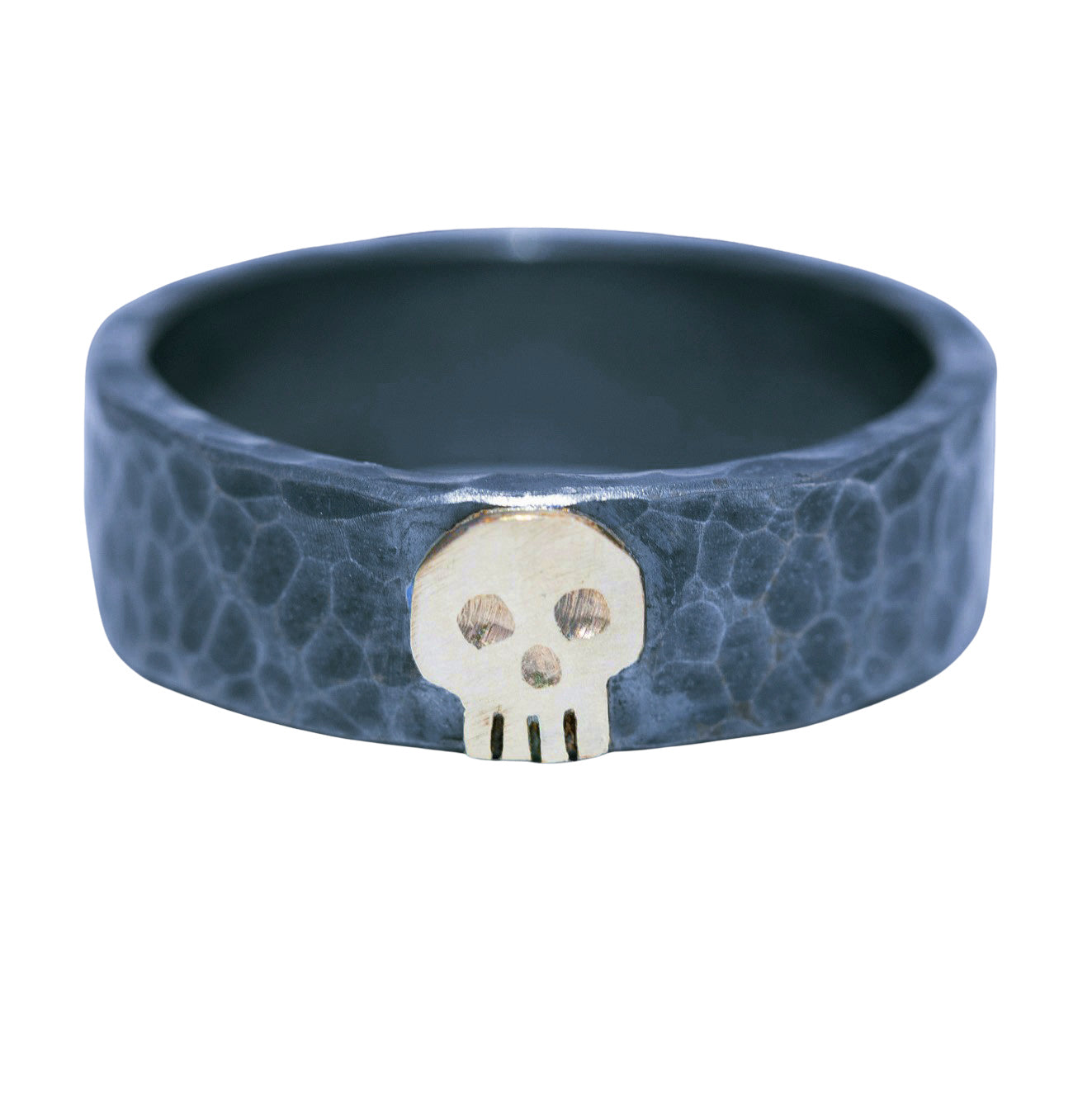 Single Skull Necklace - 18ky Gold + Oxidized Silver