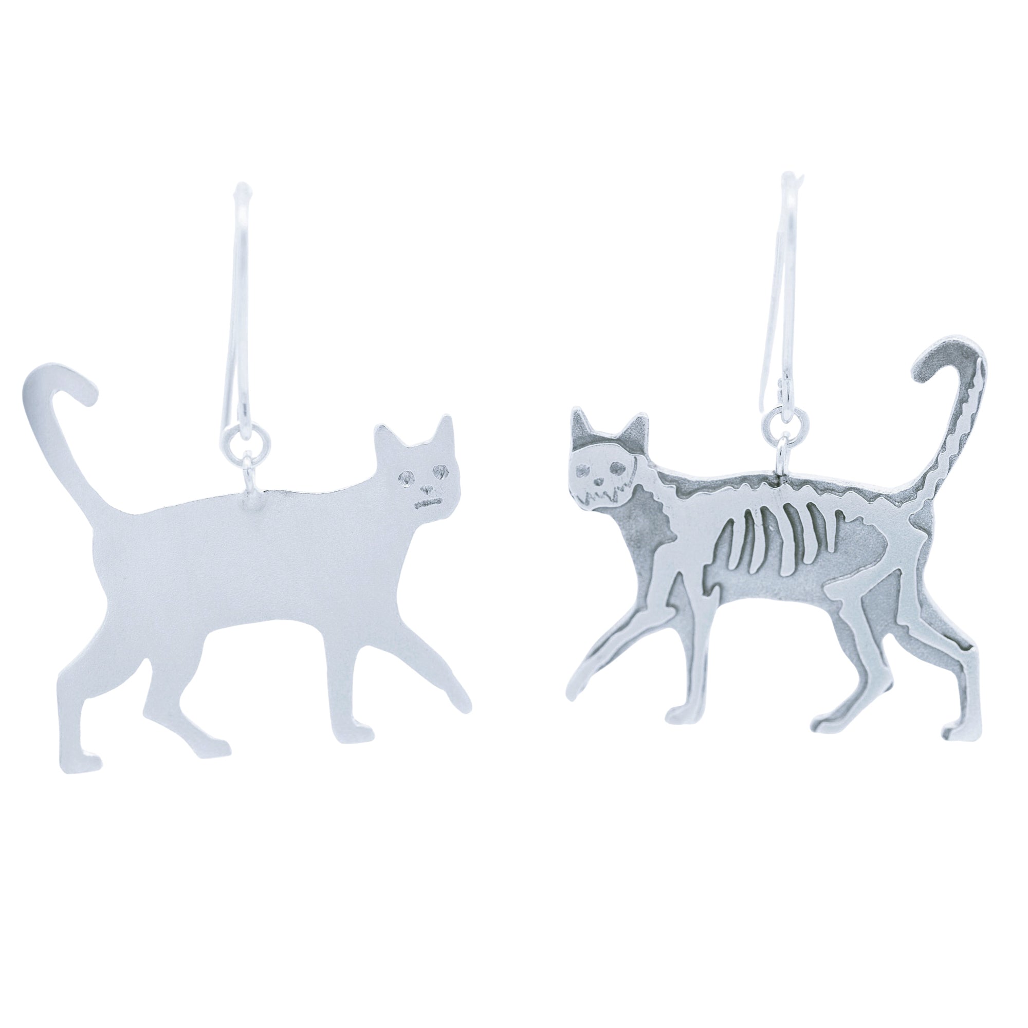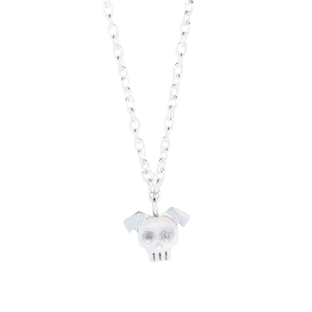 Single Doggy Skull Necklace - Sterling Silver + Cognac Diamonds