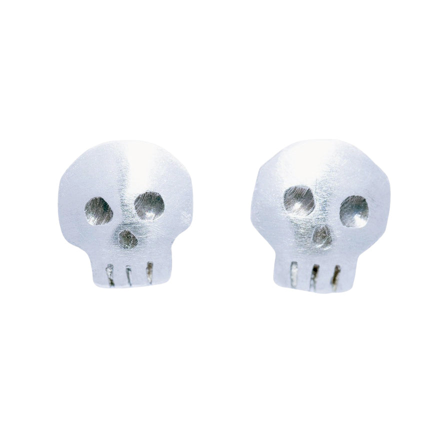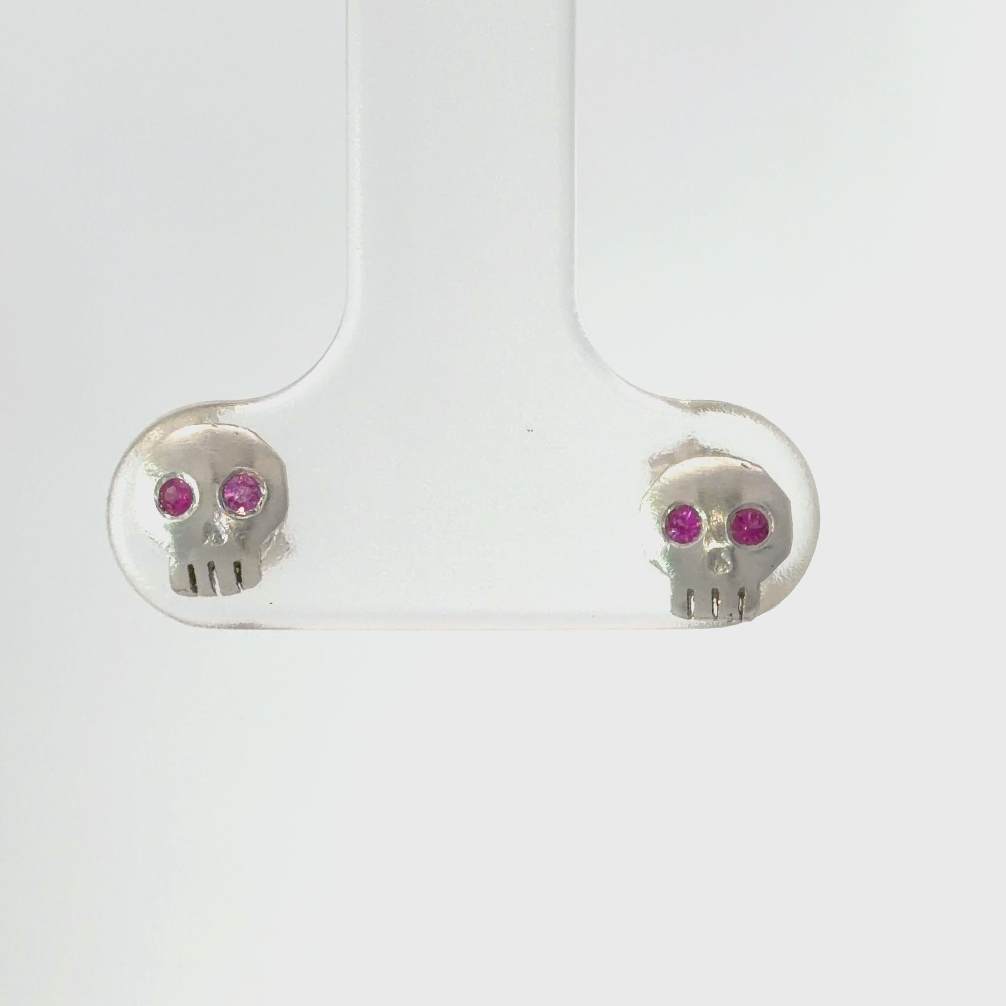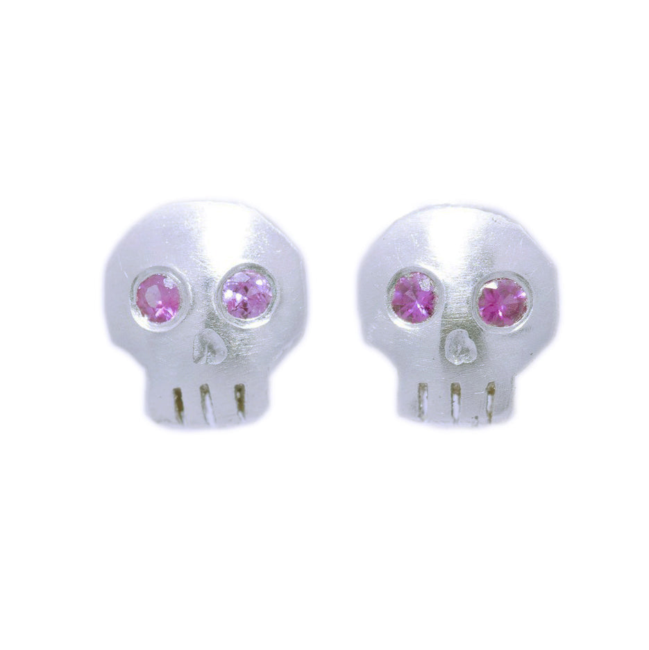 Skull Studs - Bright Sterling Silver with Pink Sapphires