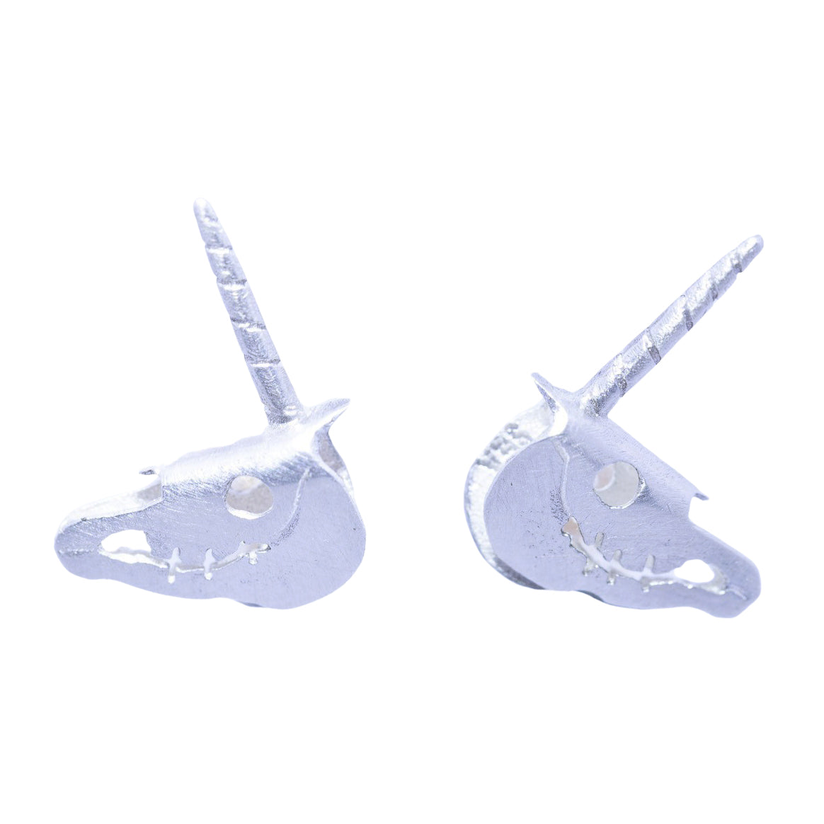 Tiny Unicorn Skull Studs - Bright Sterling Silver