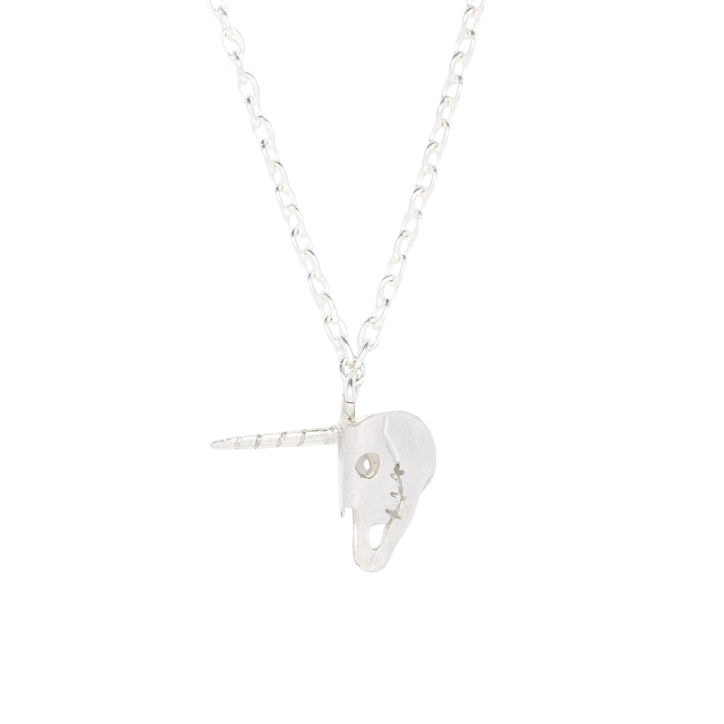 Tiny Unicorn Skull Necklace - Sterling Silver