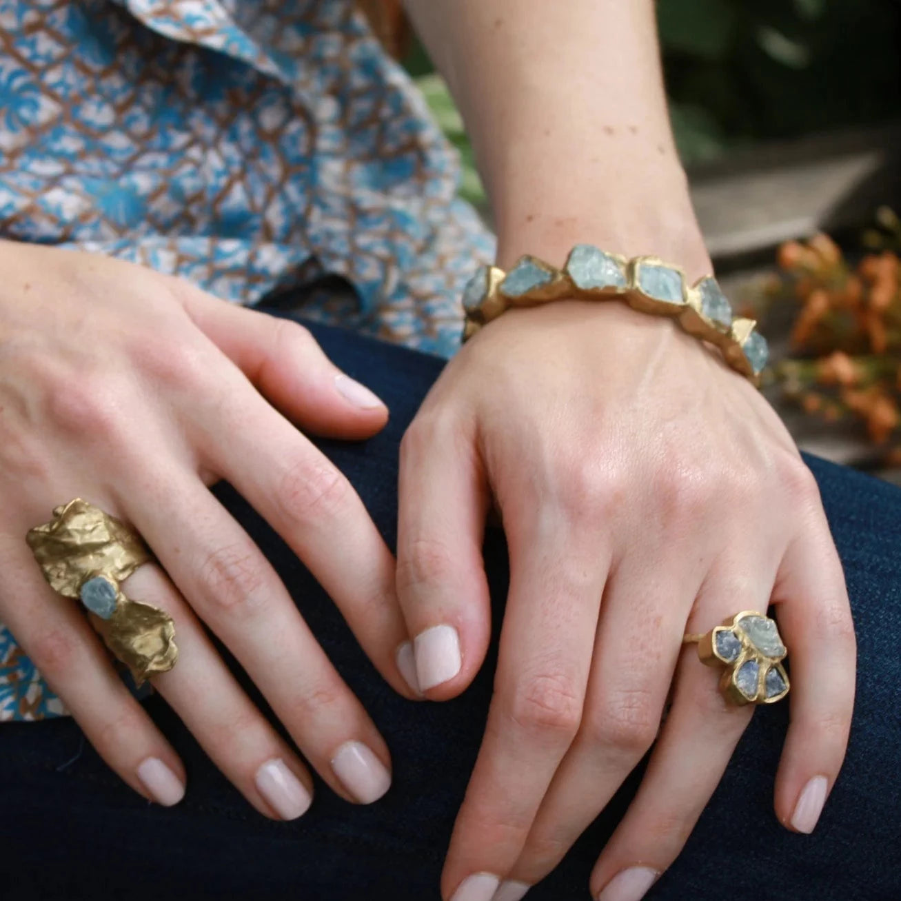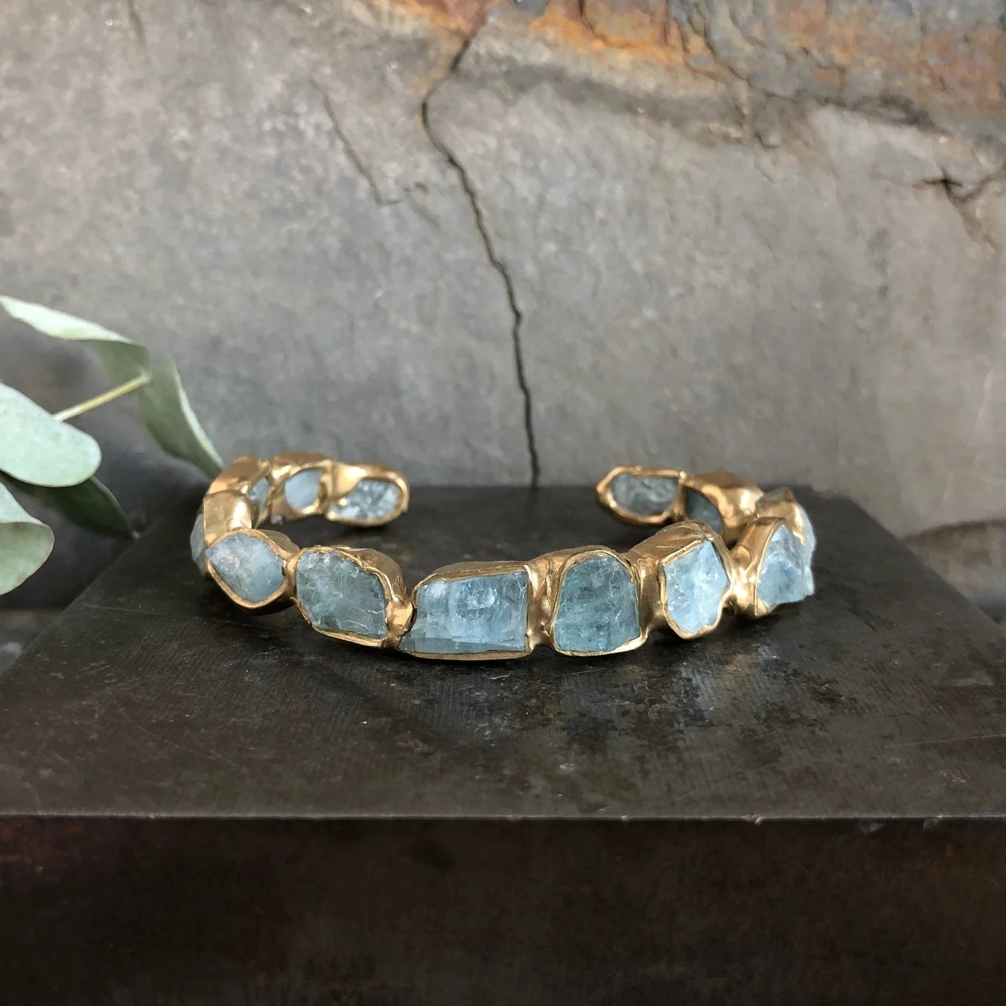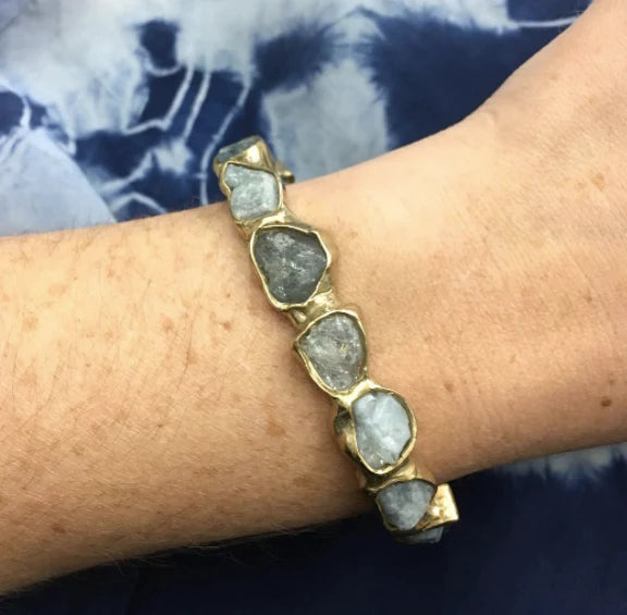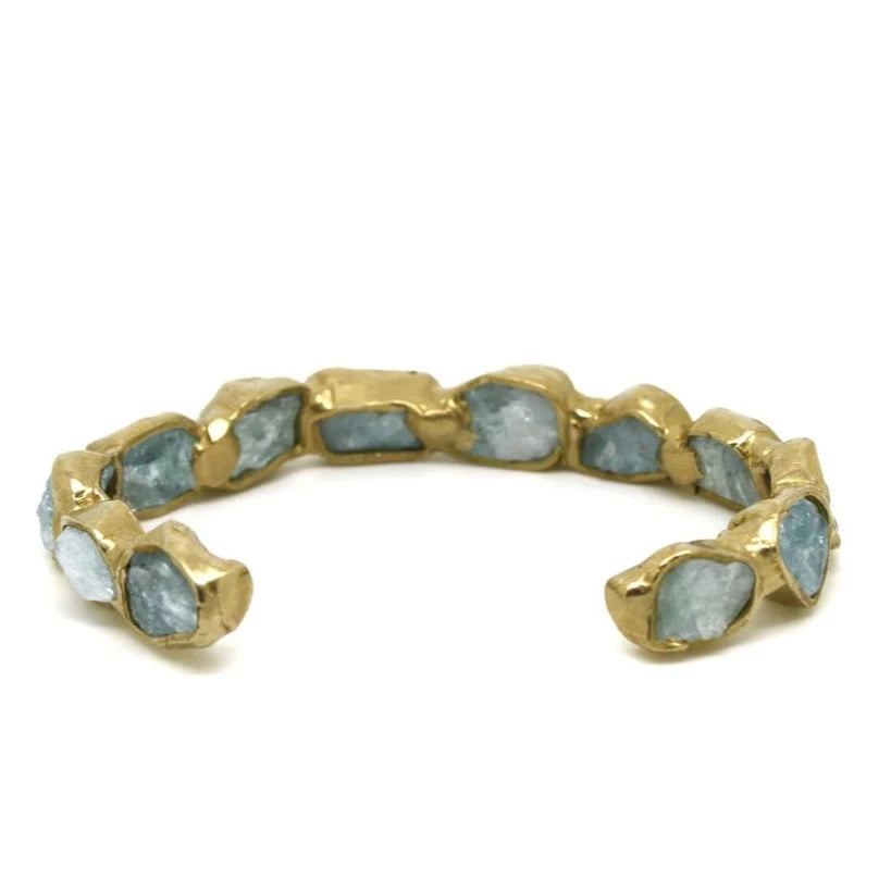 Slim Seafaring Cuff - Brass + Aquamarine