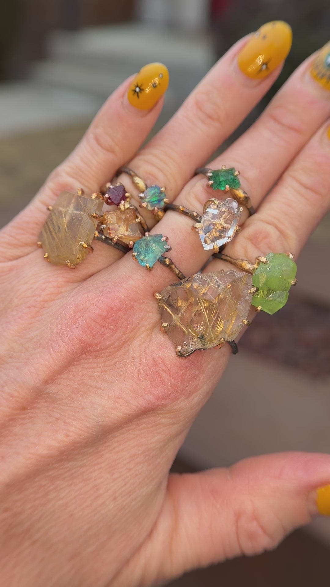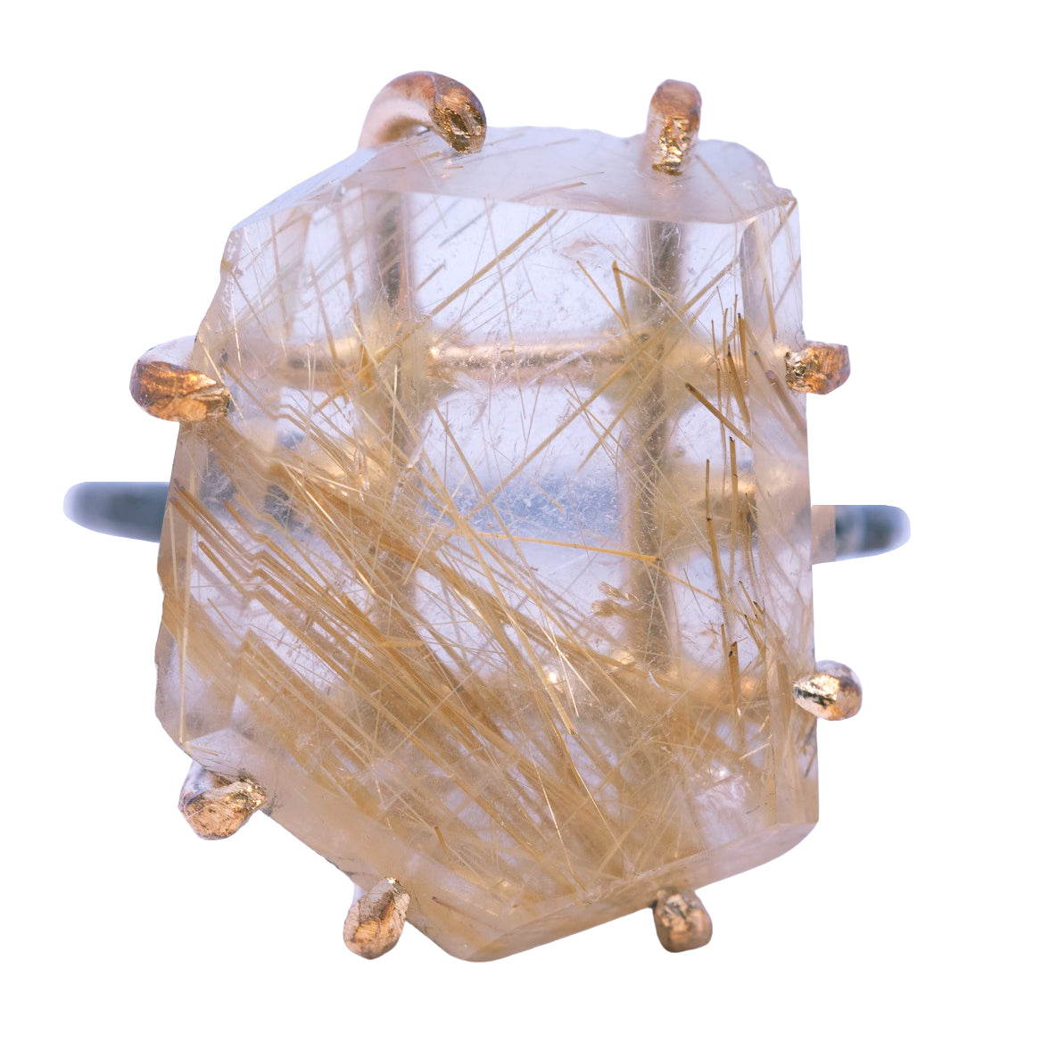 Rutilated Quartz Large Stone Ring - 14ky Gold + Oxidized Silver
