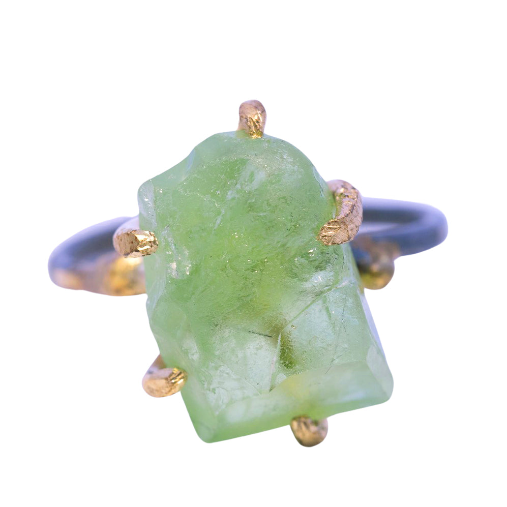 Peridot Medium Stone Ring - 14ky Gold + Oxidized Silver
