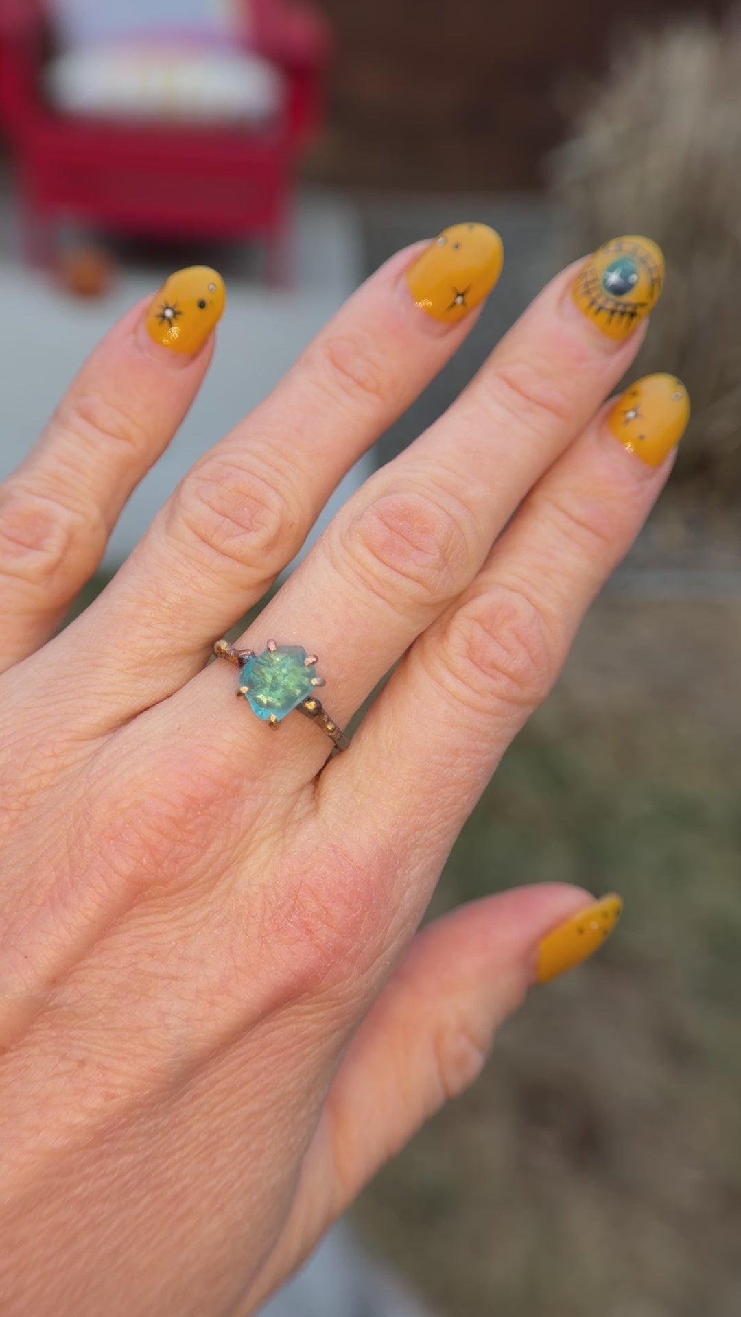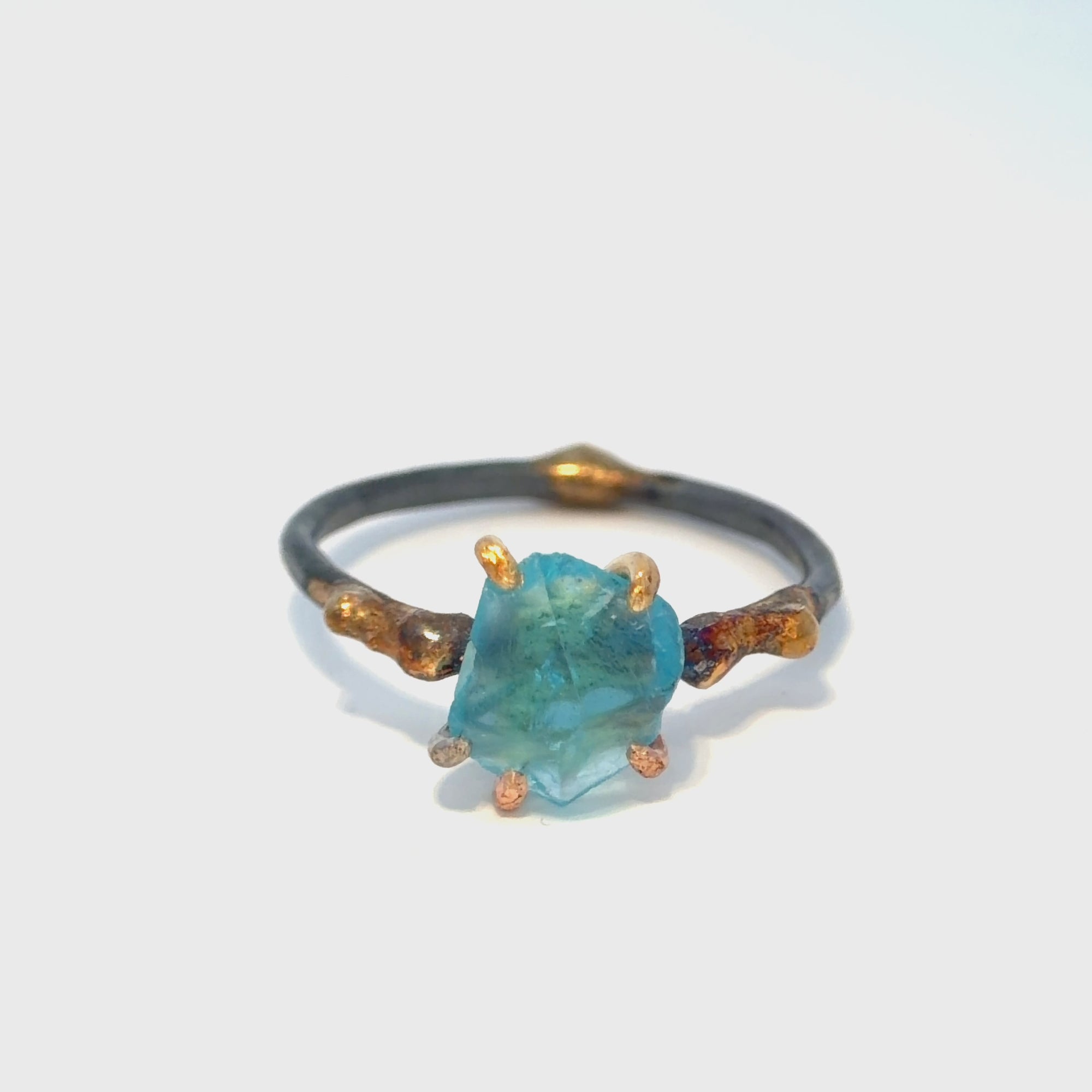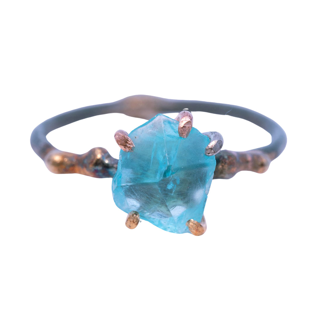 Apatite Small Stone Ring - 18ky/14kw/14kr Gold + Oxidized Silver