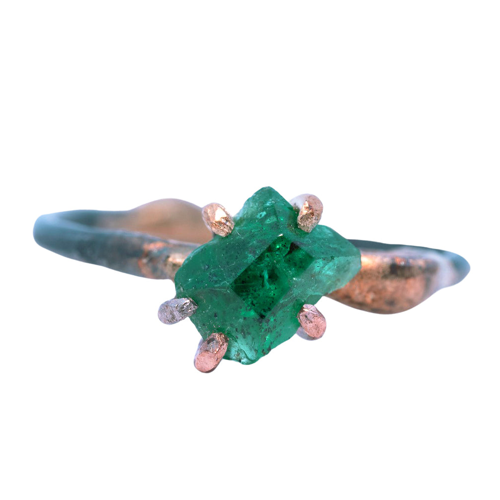 Zambian Emerald Small Stone Ring - 18ky/14kw/14r Gold+ Oxidized Silver