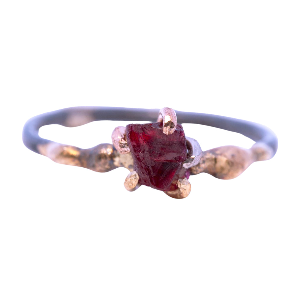 Exceptional Ruby Small Stone Ring - 18ky/14kw/14kr Gold + Oxidized Silver