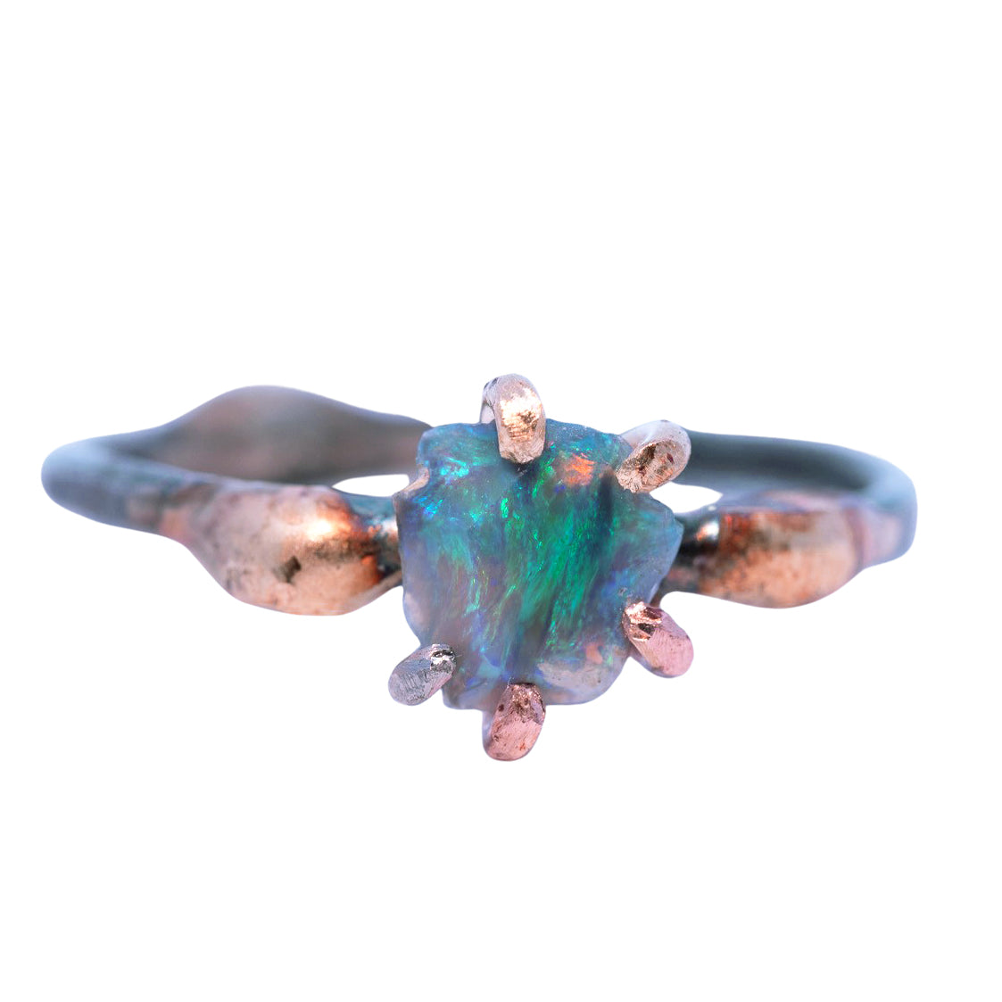 Australian Opal Small Stone Ring - 18ky/14kw/14kr Gold + Oxidized Silver