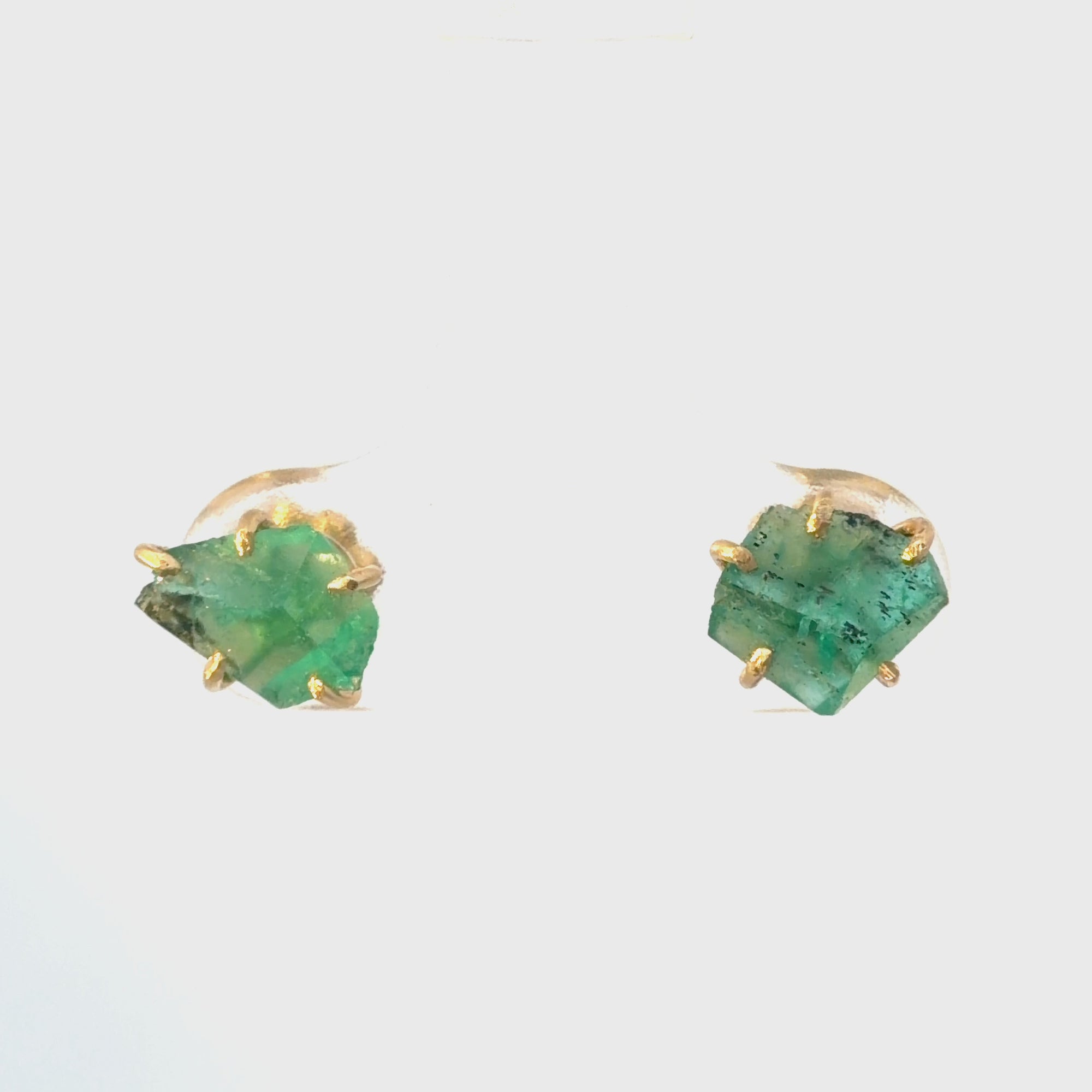 Zambian Emerald Small Stone Studs - 14ky Gold