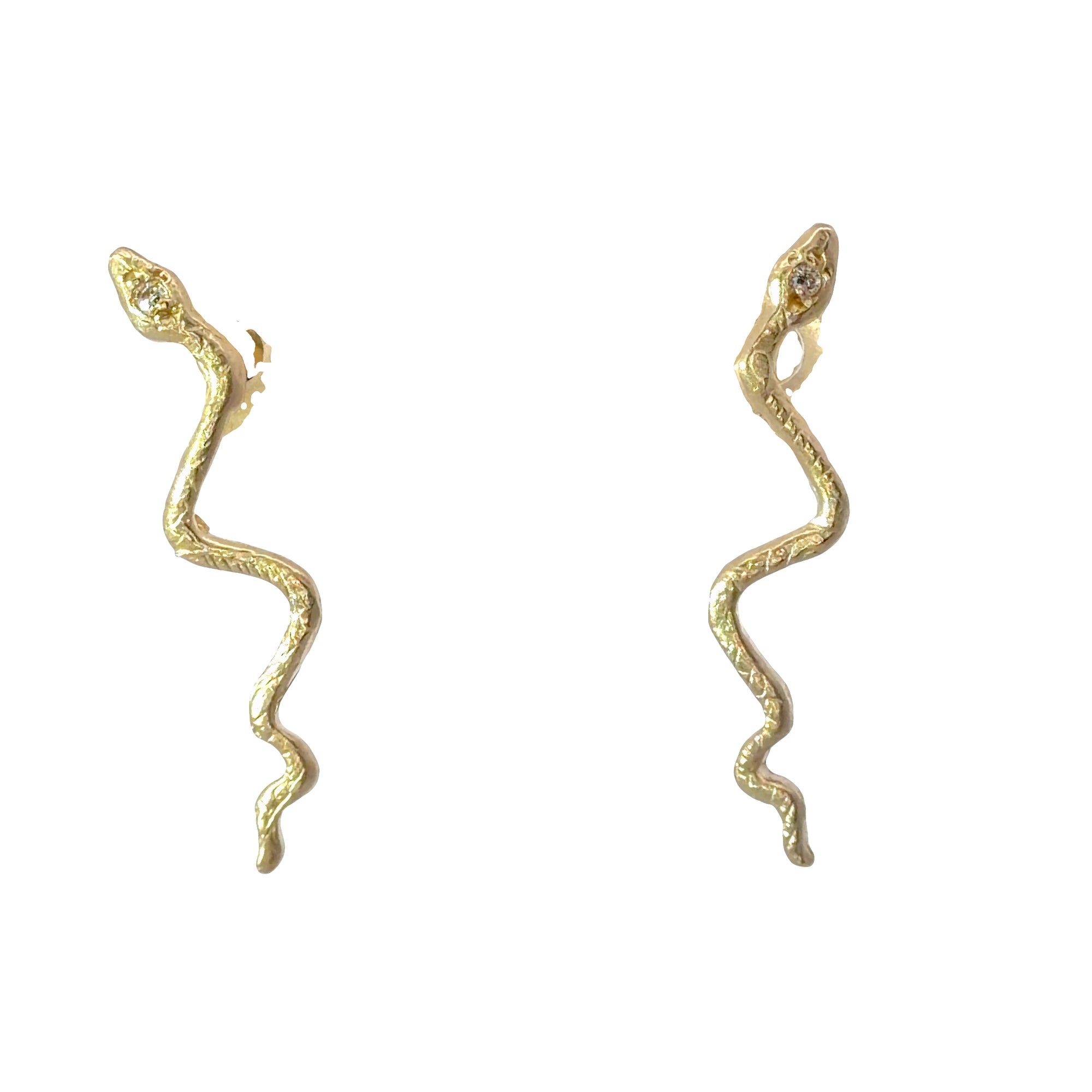 Snake Stud Earrings - 14k Gold + Diamonds