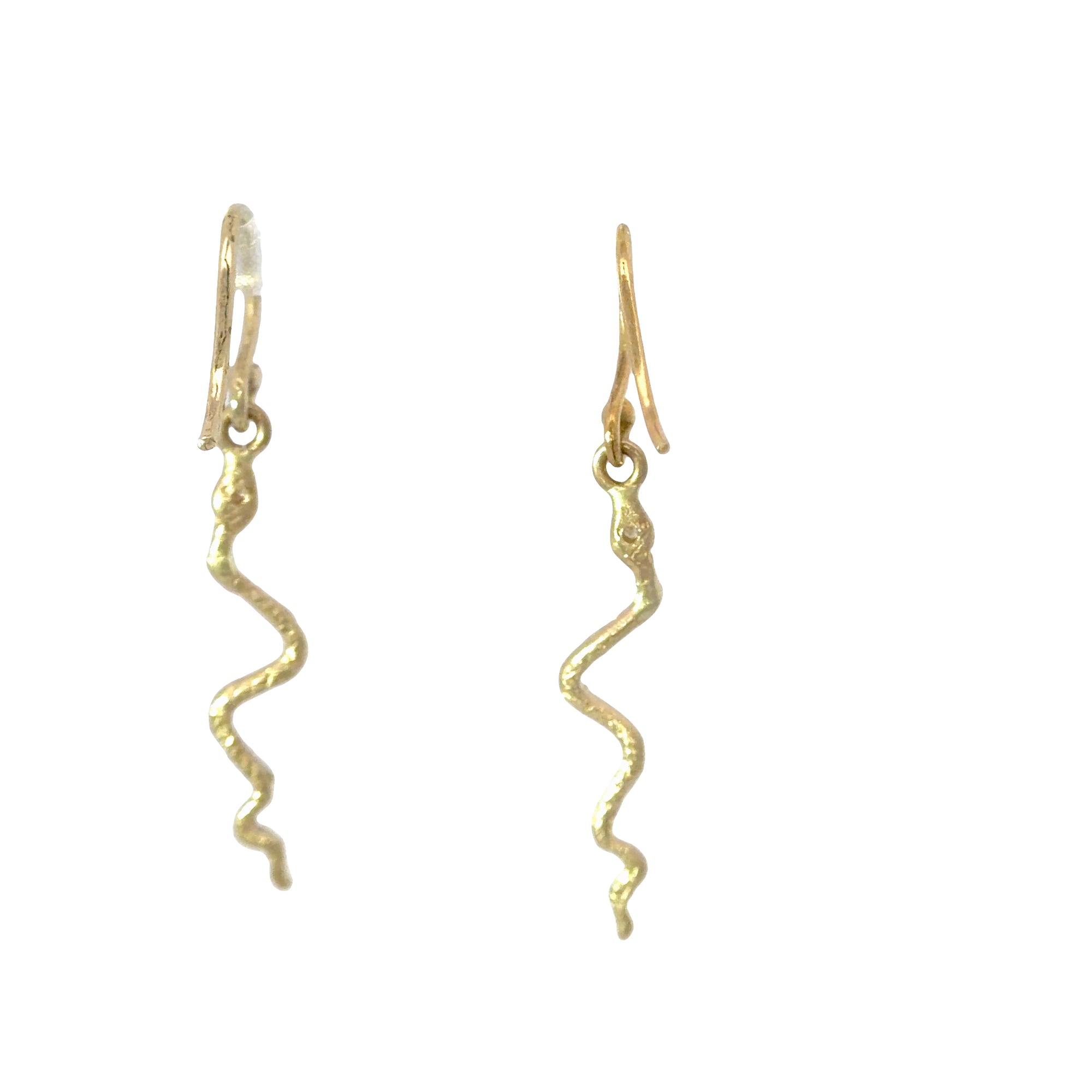 Snake Dangle Earrings - 14k Gold + Diamonds