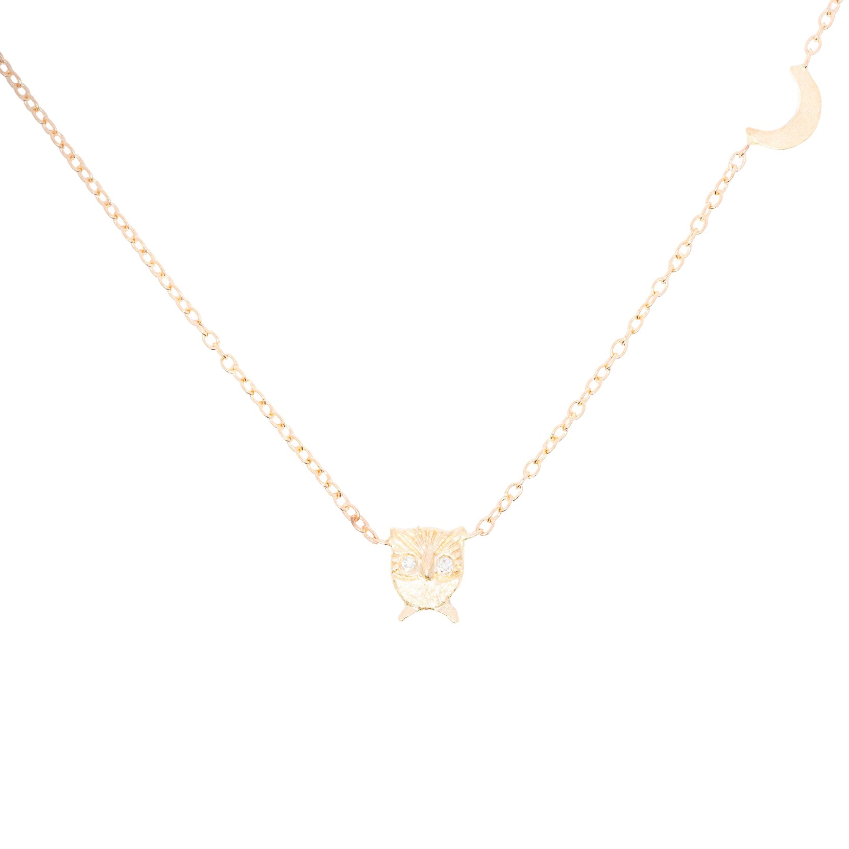 Owl + Moon Necklace - 14k Gold + Diamonds