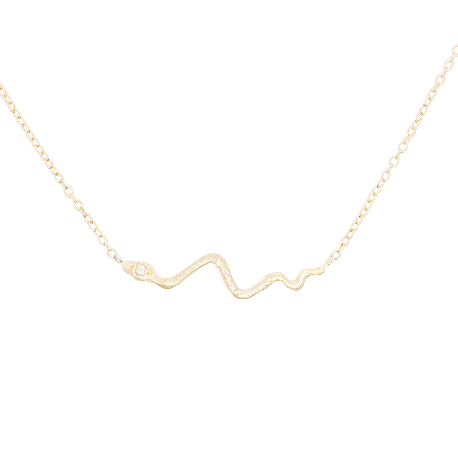 Tiny Snake Necklace - 14k Gold + Diamonds