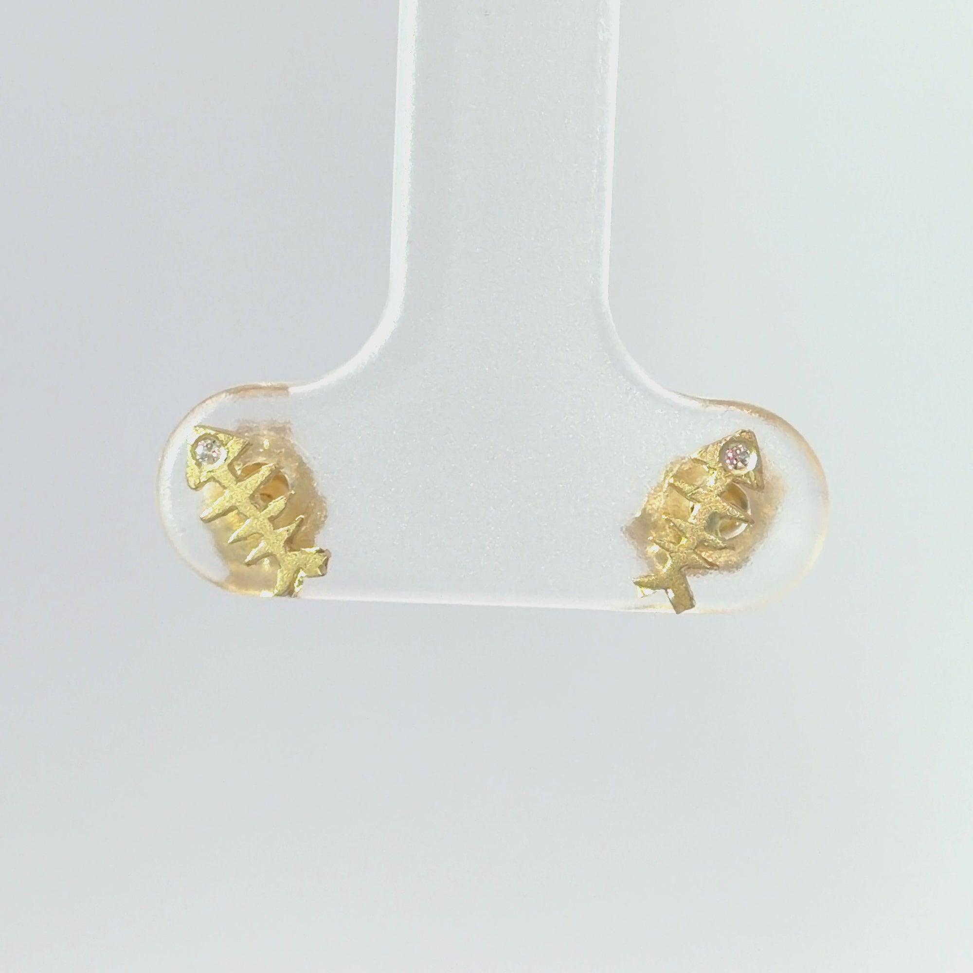 Fish Bone Earrings - 14k Gold + Diamonds