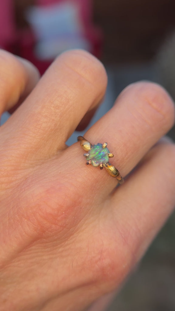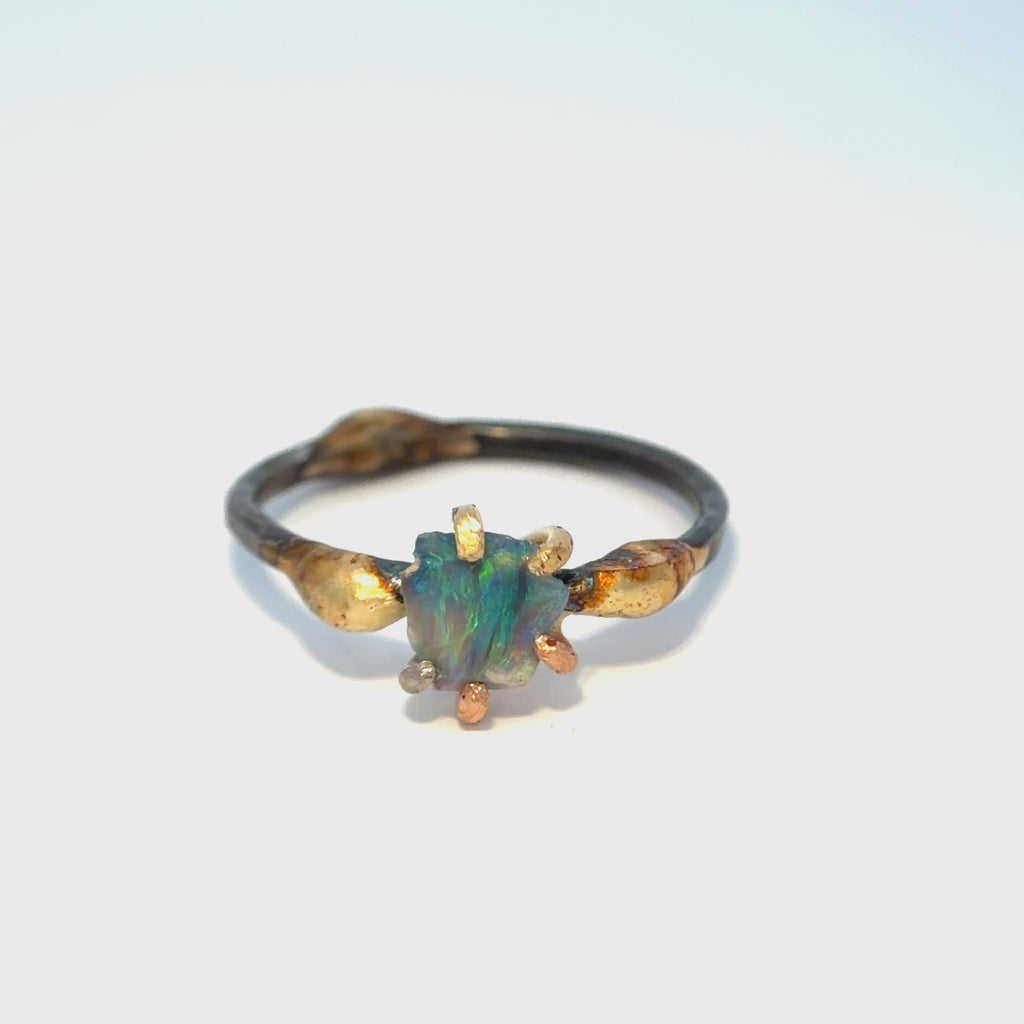 Australian Opal Small Stone Ring - 18ky/14kw/14kr Gold + Oxidized Silver