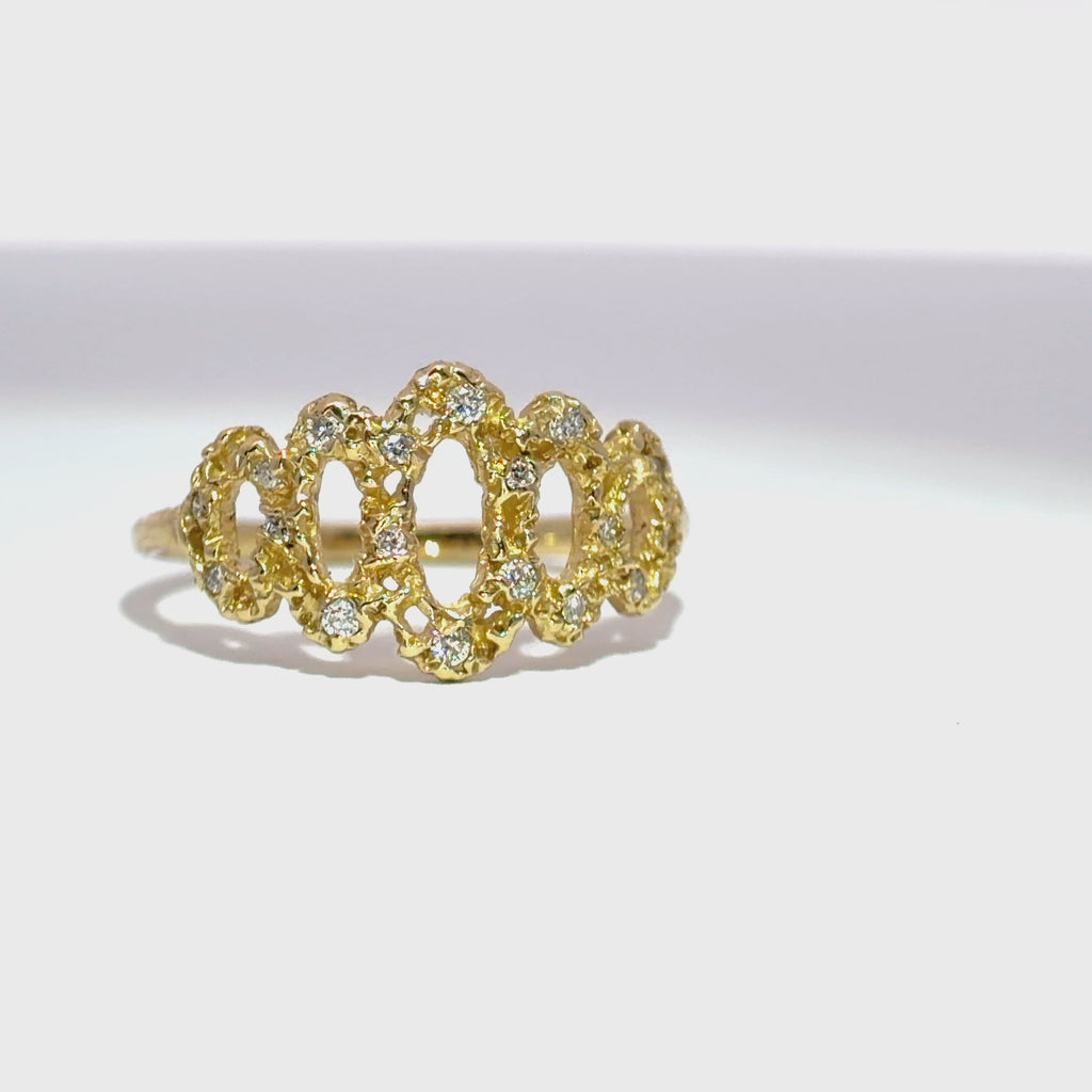 Delicate Scallop Ring - 14ky Gold + Daimonds