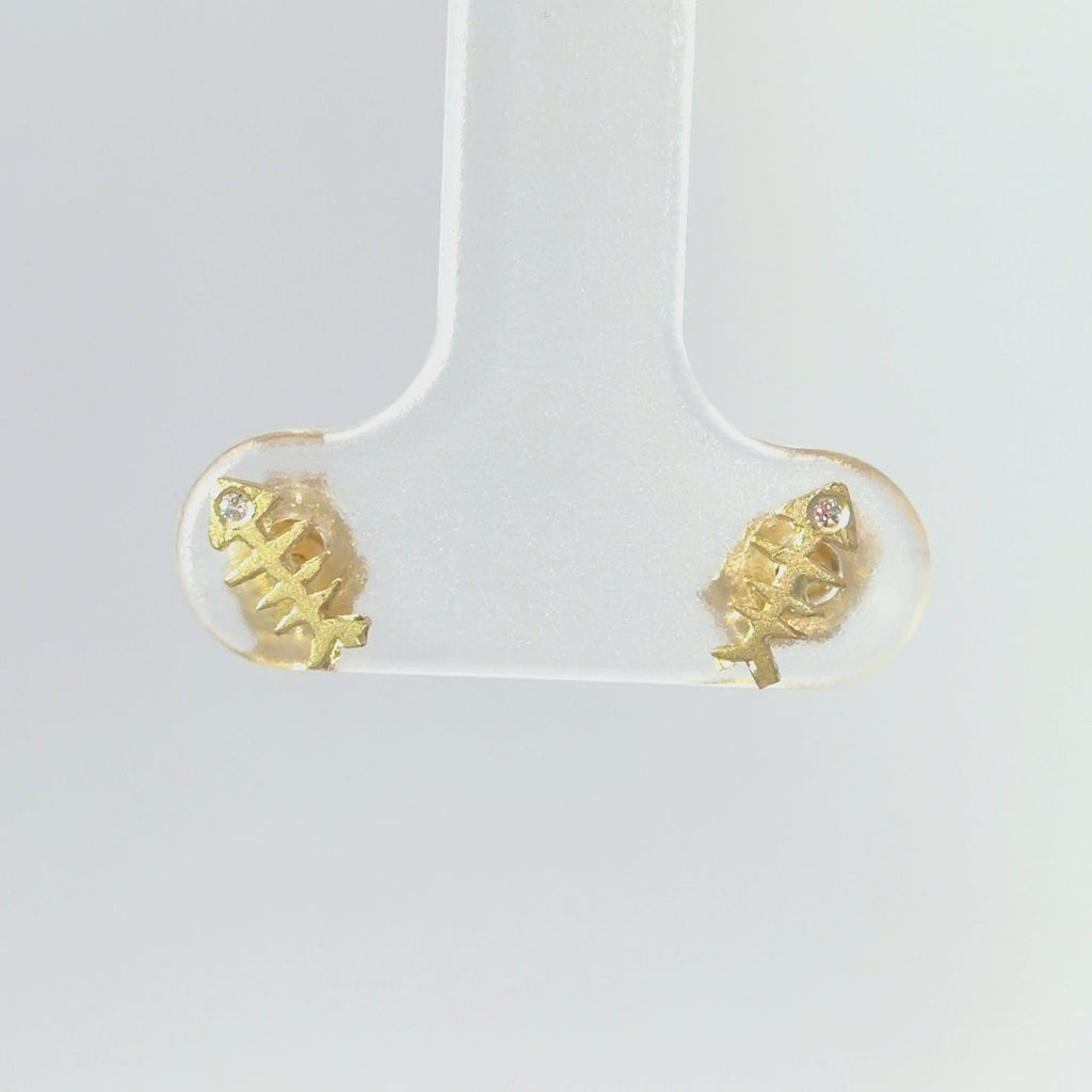Fish Bone Earrings - 14k Gold + Diamonds
