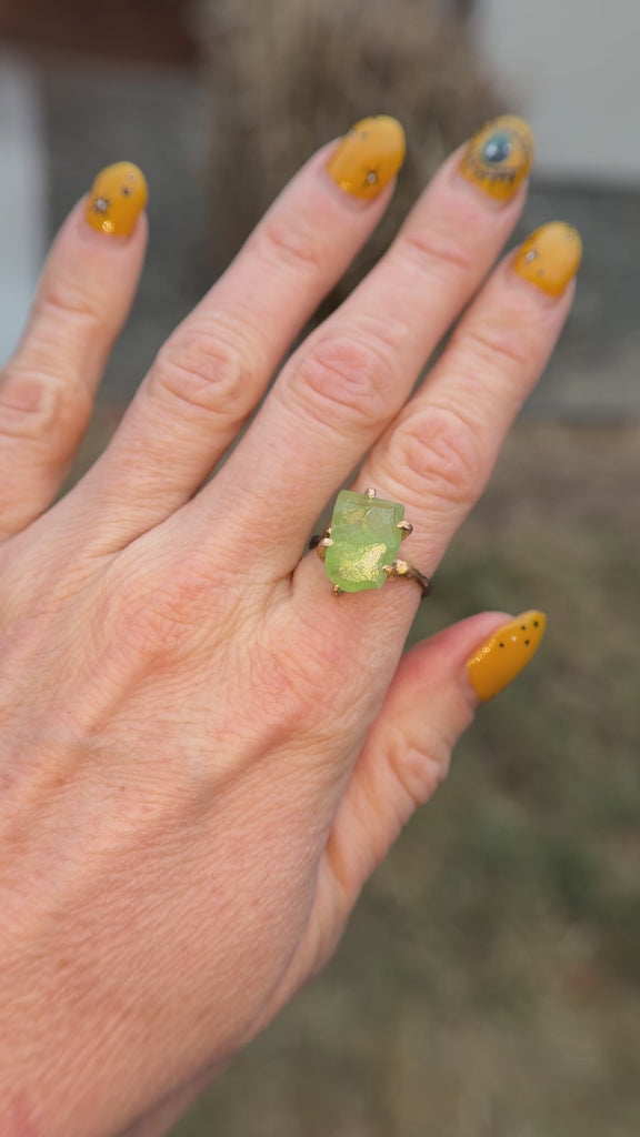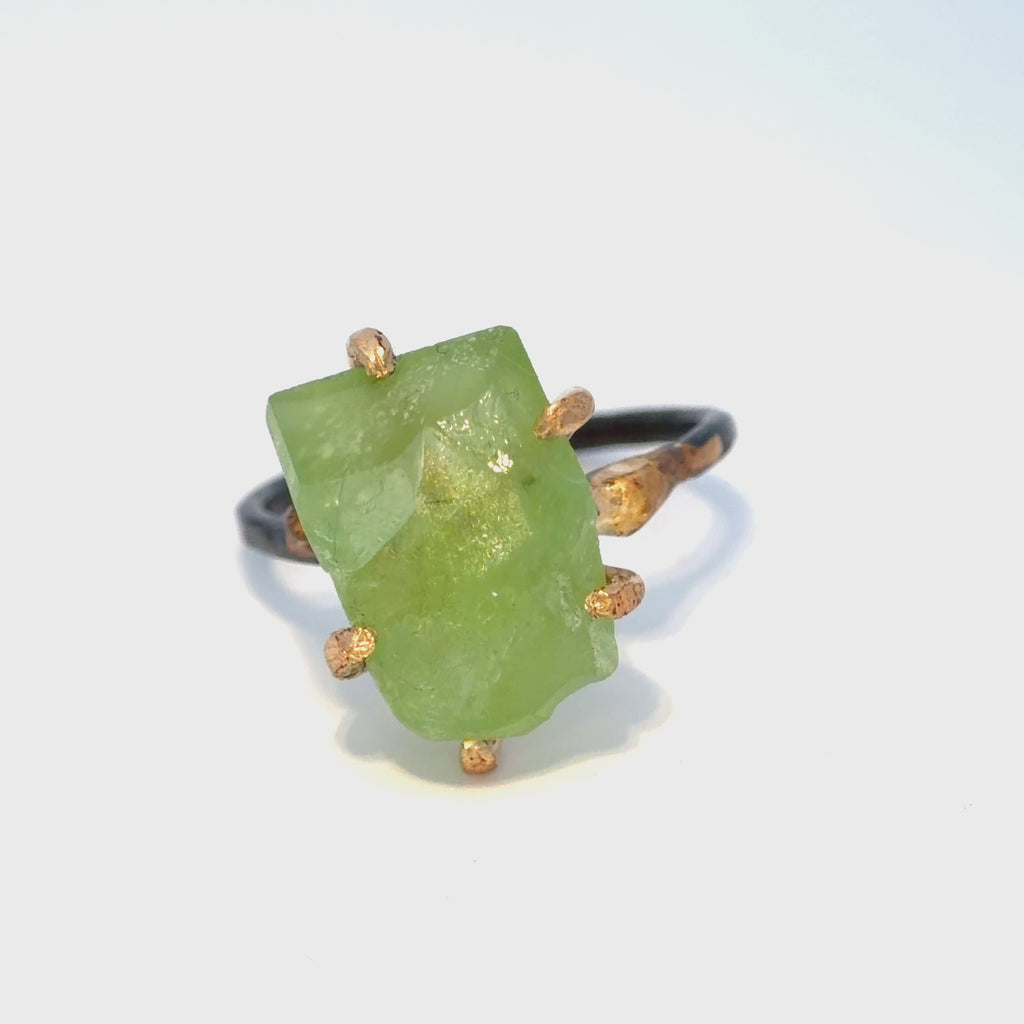 Peridot Medium Stone Ring - 14ky Gold + Oxidized Silver