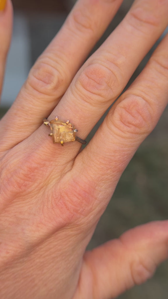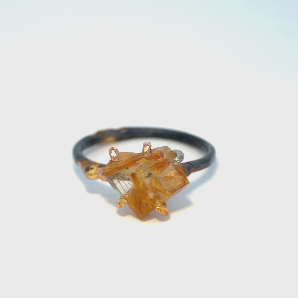 Rutilated Quartz Small Stone Ring - 18ky/14kw/14kr Gold + Oxidized Silver