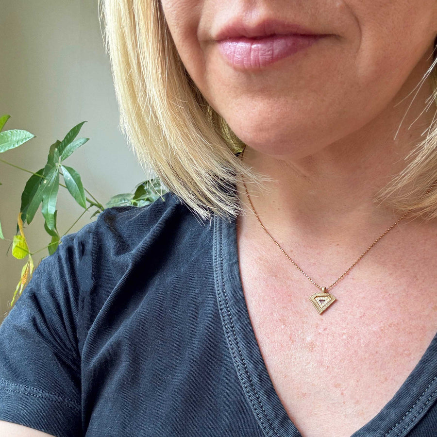 Shield Pendant - 18k Yellow Gold + Diamonds