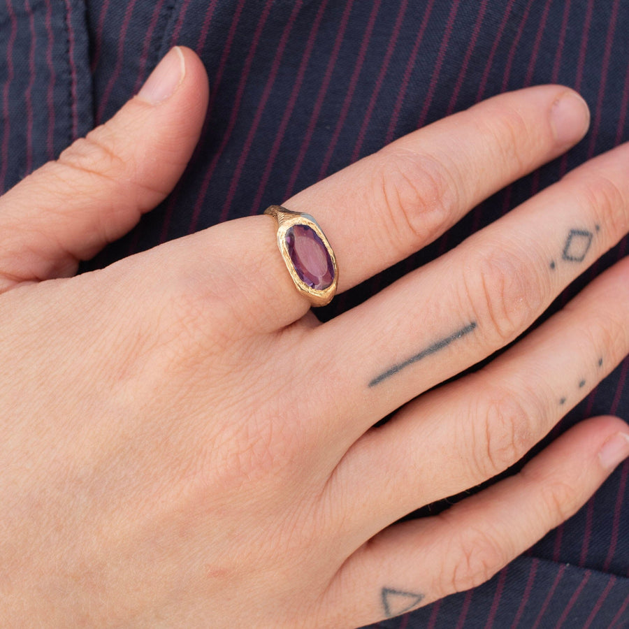 Signet Ring in Burgundy Sapphire - 18k Gold, size 7.25