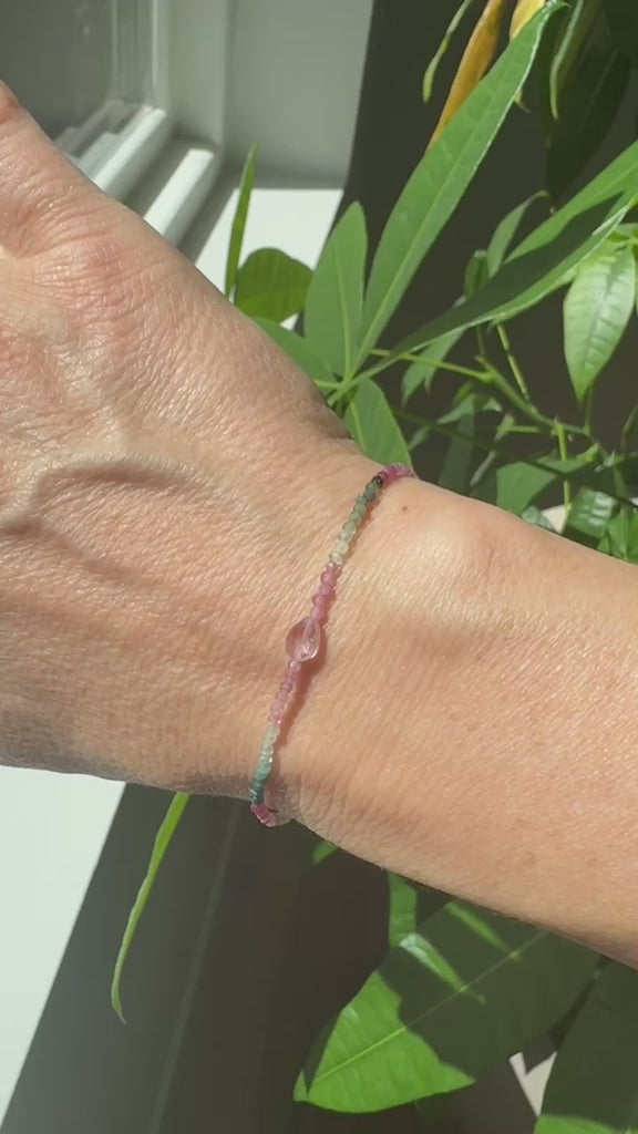 Watermelon Tourmaline + Light Pink Beaded Bracelet